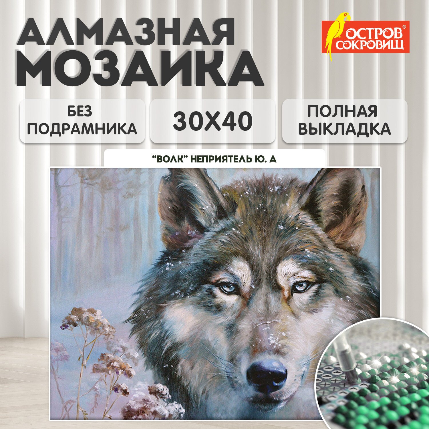 Картина стразами (алмазная мозаика) 30х40 см, ОСТРОВ СОКРОВИЩ "Волк", без подрамника, 662565