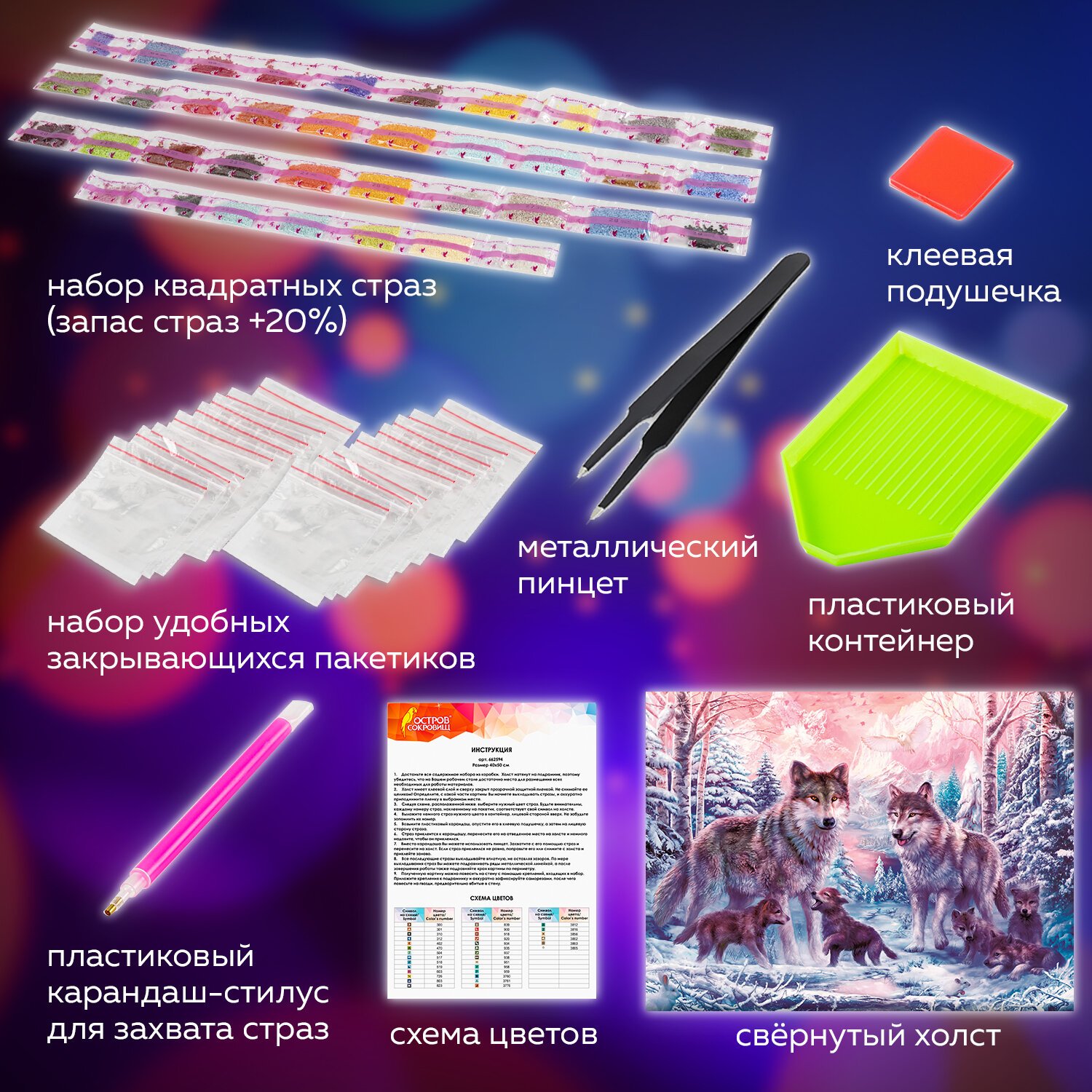 Картина стразами (алмазная мозаика) 30х40 см, ОСТРОВ СОКРОВИЩ "Волки", на подрамнике, 662423