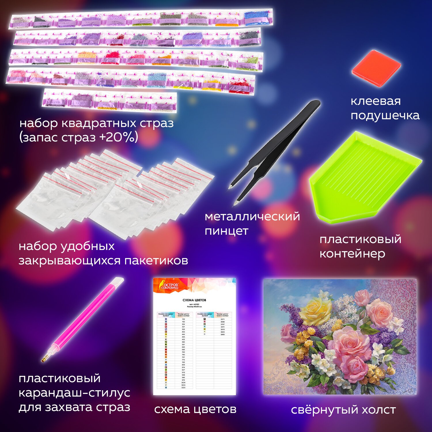 Картина стразами (алмазная мозаика), 40х50 см, ОСТРОВ СОКРОВИЩ "Букет", без подрамника, 663865