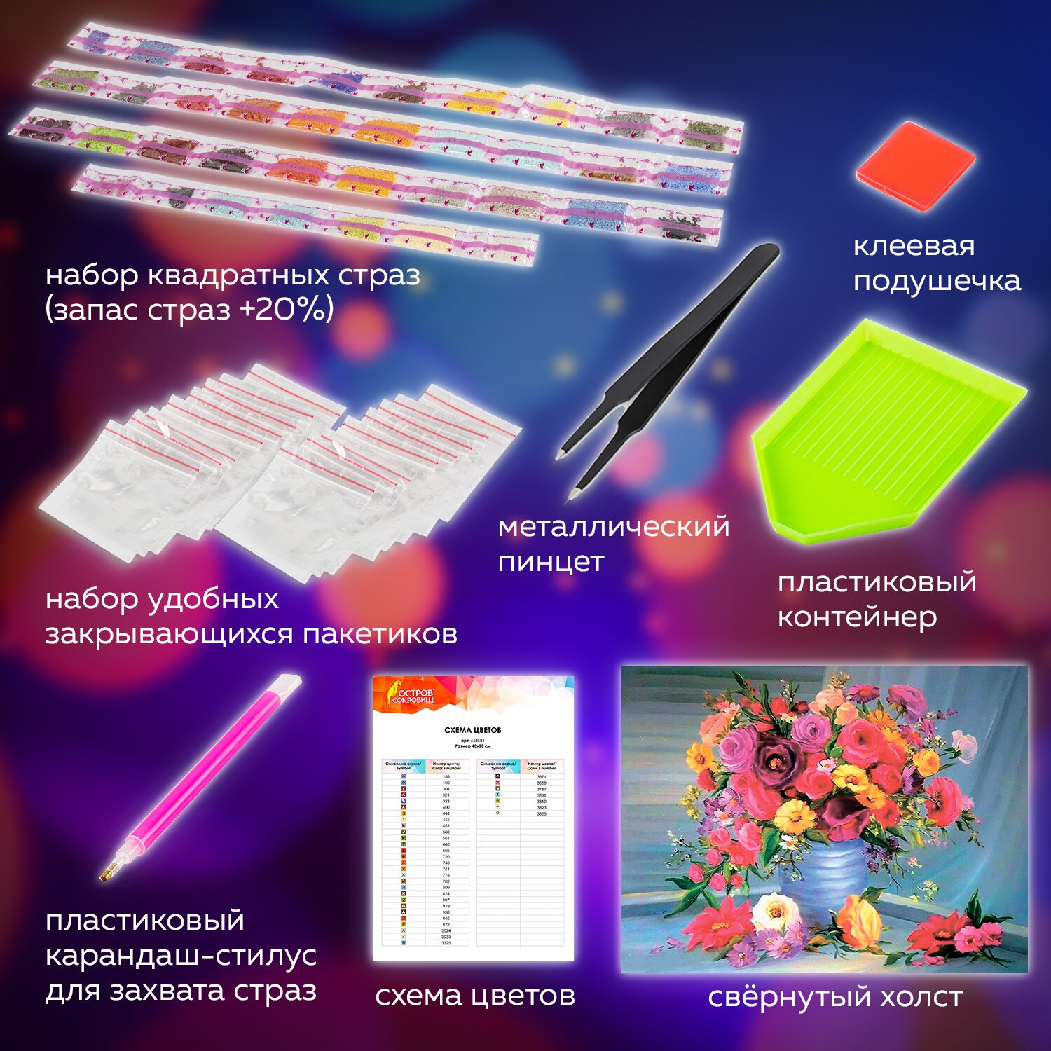 Картина стразами (алмазная мозаика) 40х50 см, ОСТРОВ СОКРОВИЩ "Цветы", без подрамника, 662415