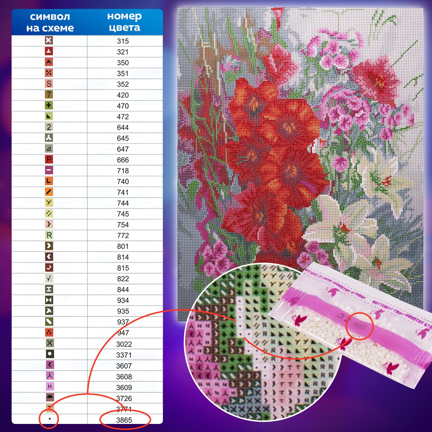 - набор квадратных страз разных цветов, пронумерованных в соответствии со схемой;