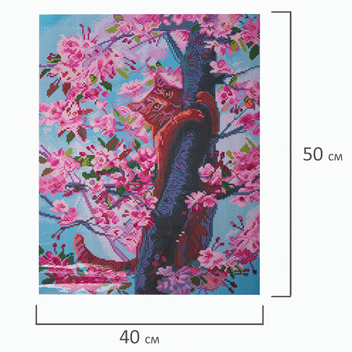 Картина стразами (алмазная мозаика) 40х50 см, ОСТРОВ СОКРОВИЩ "Кот на дереве", без подрамника, 662577