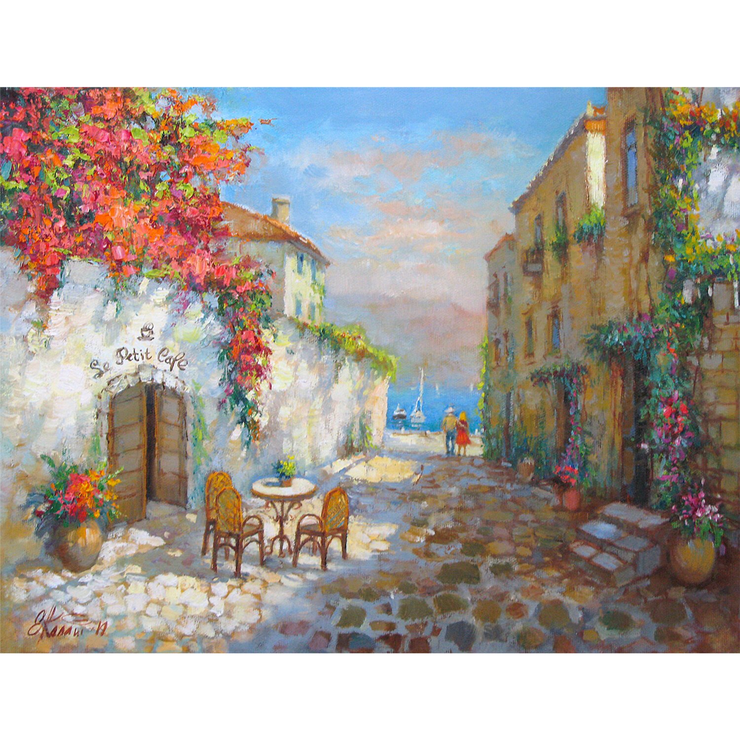 Картина стразами "Маленькое кафе" представляет собой эксклюзивный сюжет по картине российского художника Калашниковой Е. В. и включает в себя: