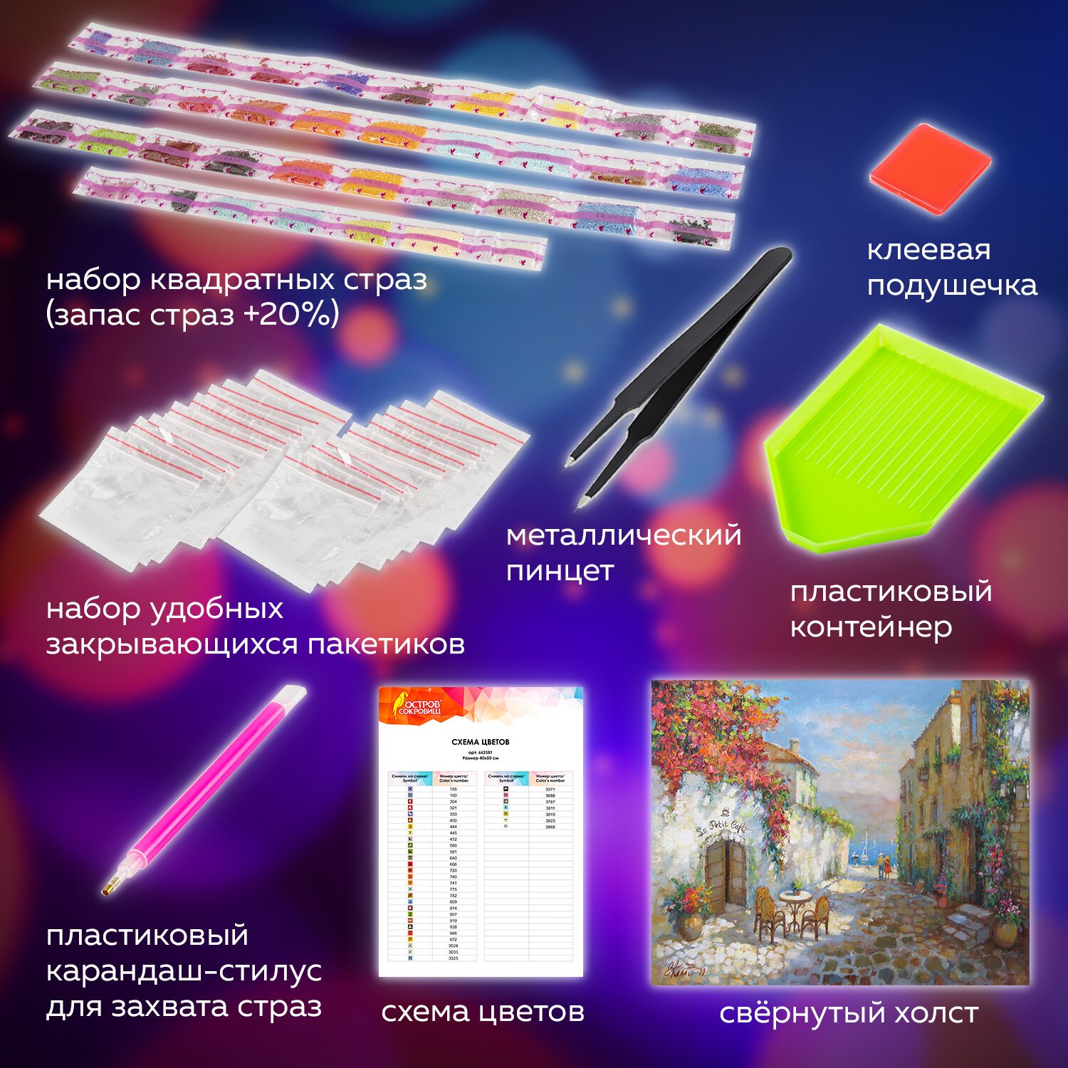 Техника алмазной мозаики проста в исполнении и не требует владения никакими специальными навыками. Все необходимые для работы материалы и инструменты входят в набор. С подробной инструкцией можно ознакомиться на упаковке.