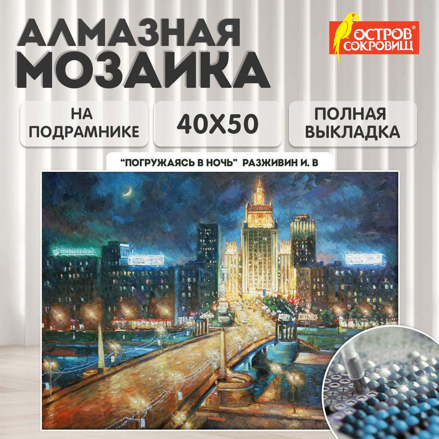 Картина стразами (алмазная мозаика) 40х50 см, ОСТРОВ СОКРОВИЩ "Ночная Москва", на подрамнике, 662594
