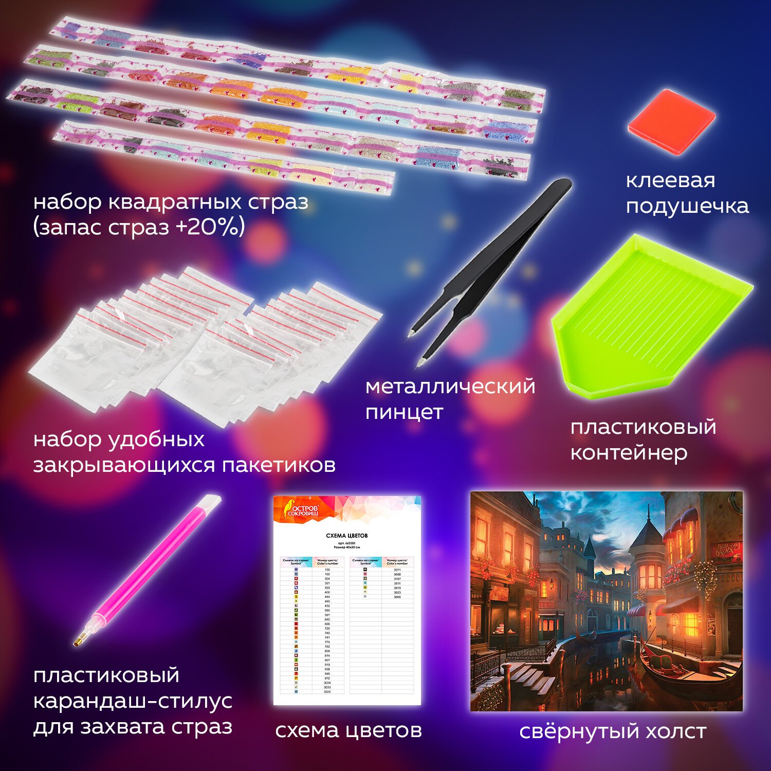 Картина стразами "Ночная Венеция" включает в себя: