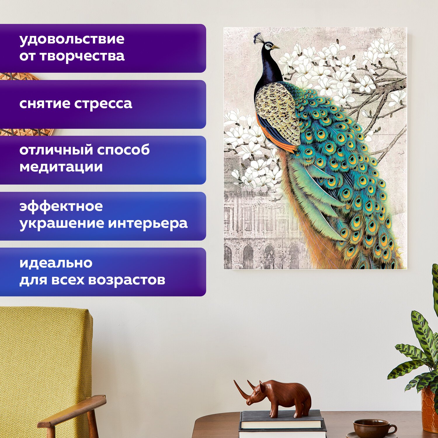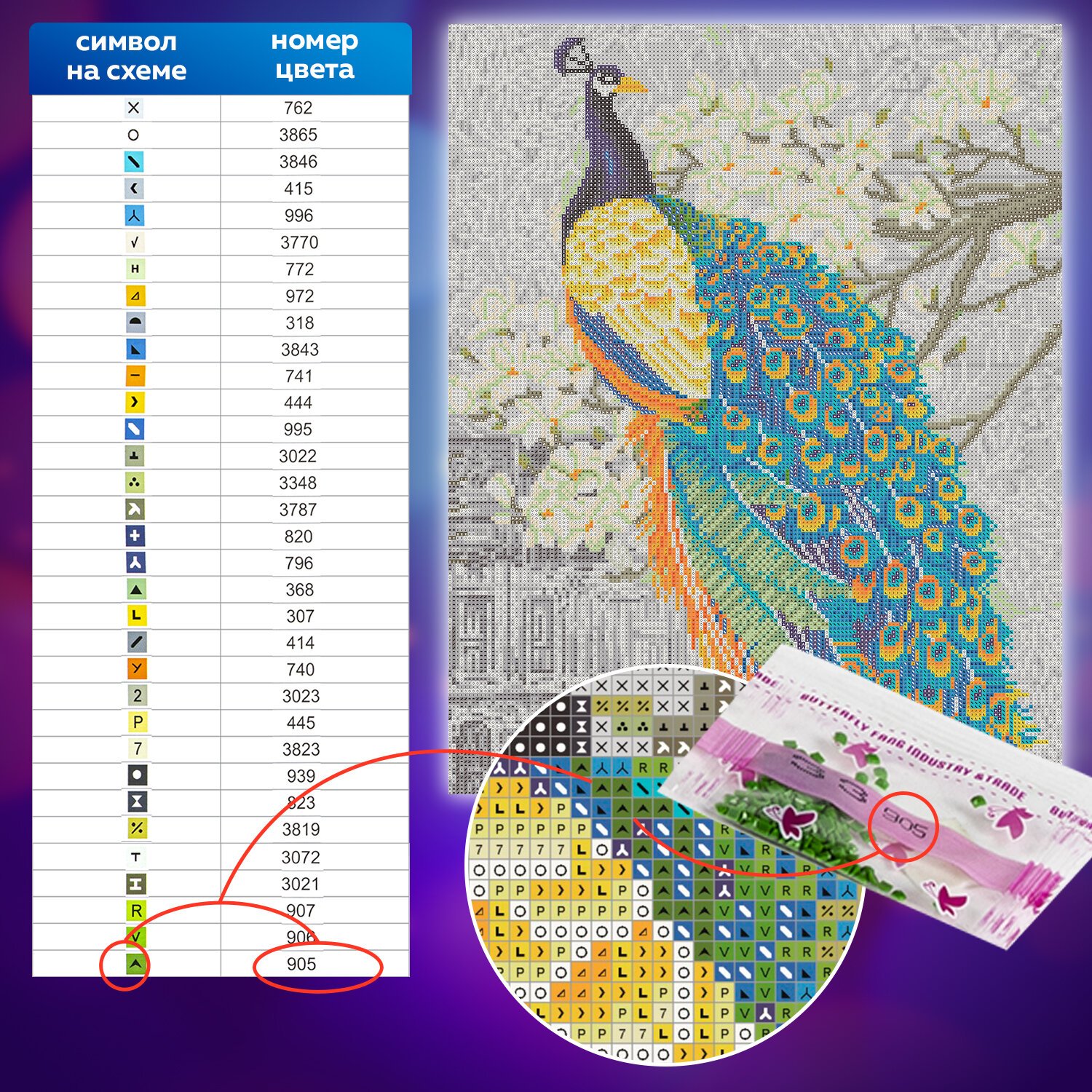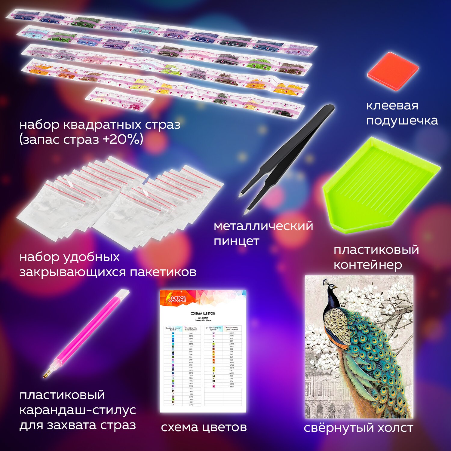 Картина стразами "Павлин" включает в себя: