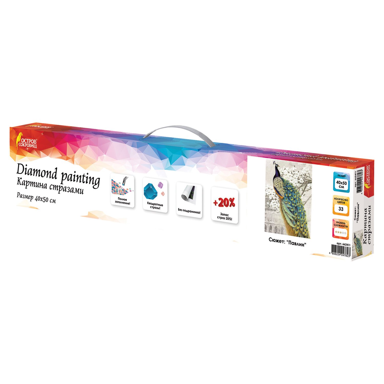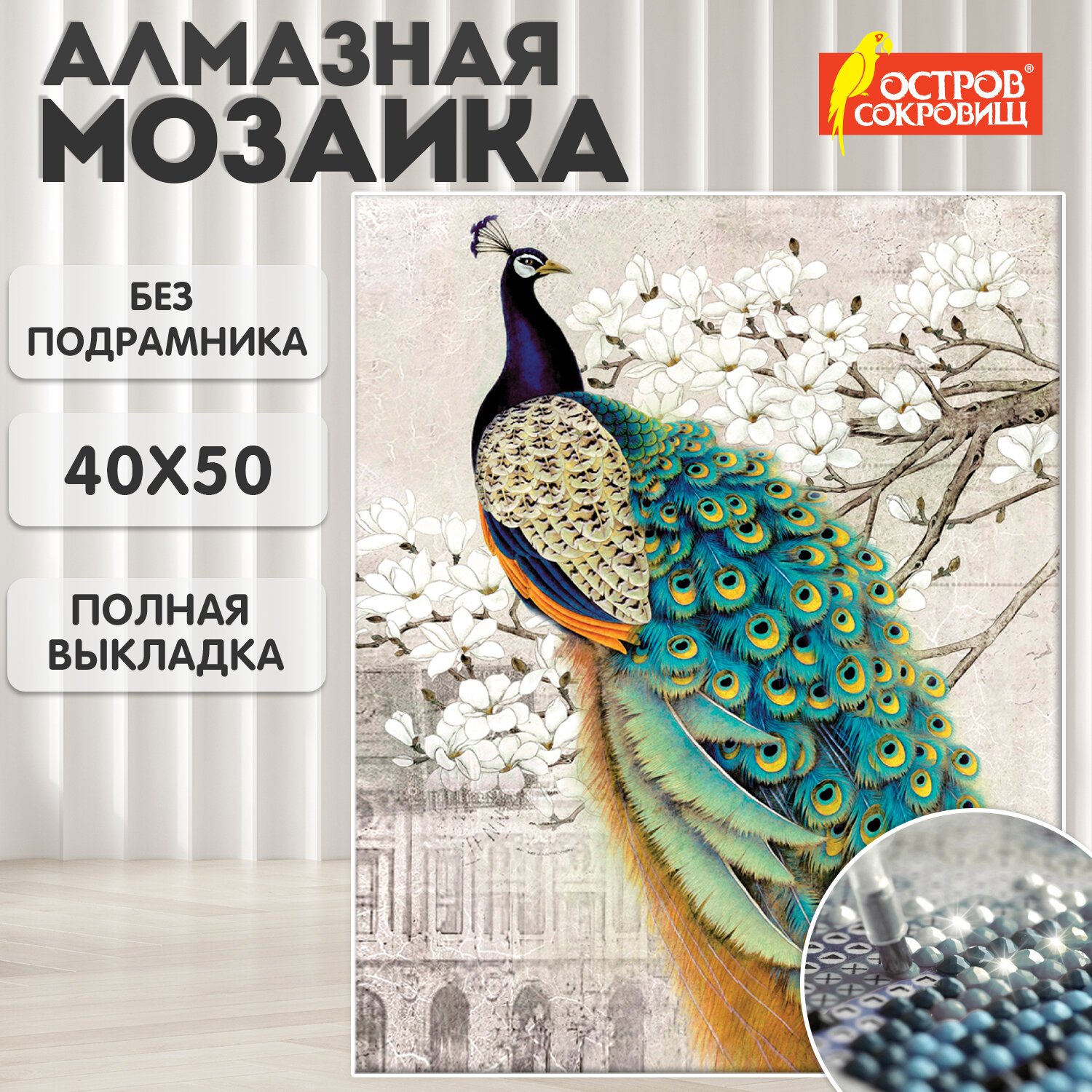 Картина стразами (алмазная мозаика) 40х50 см, ОСТРОВ СОКРОВИЩ "Павлин", без подрамника, 662411