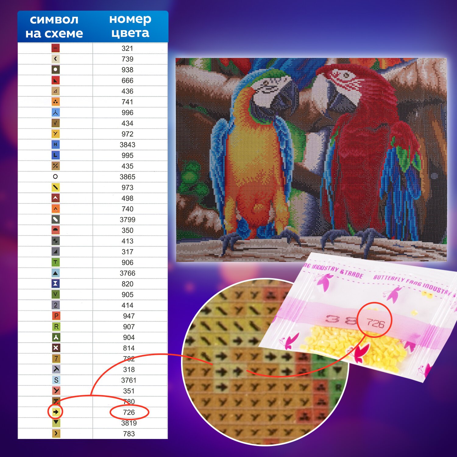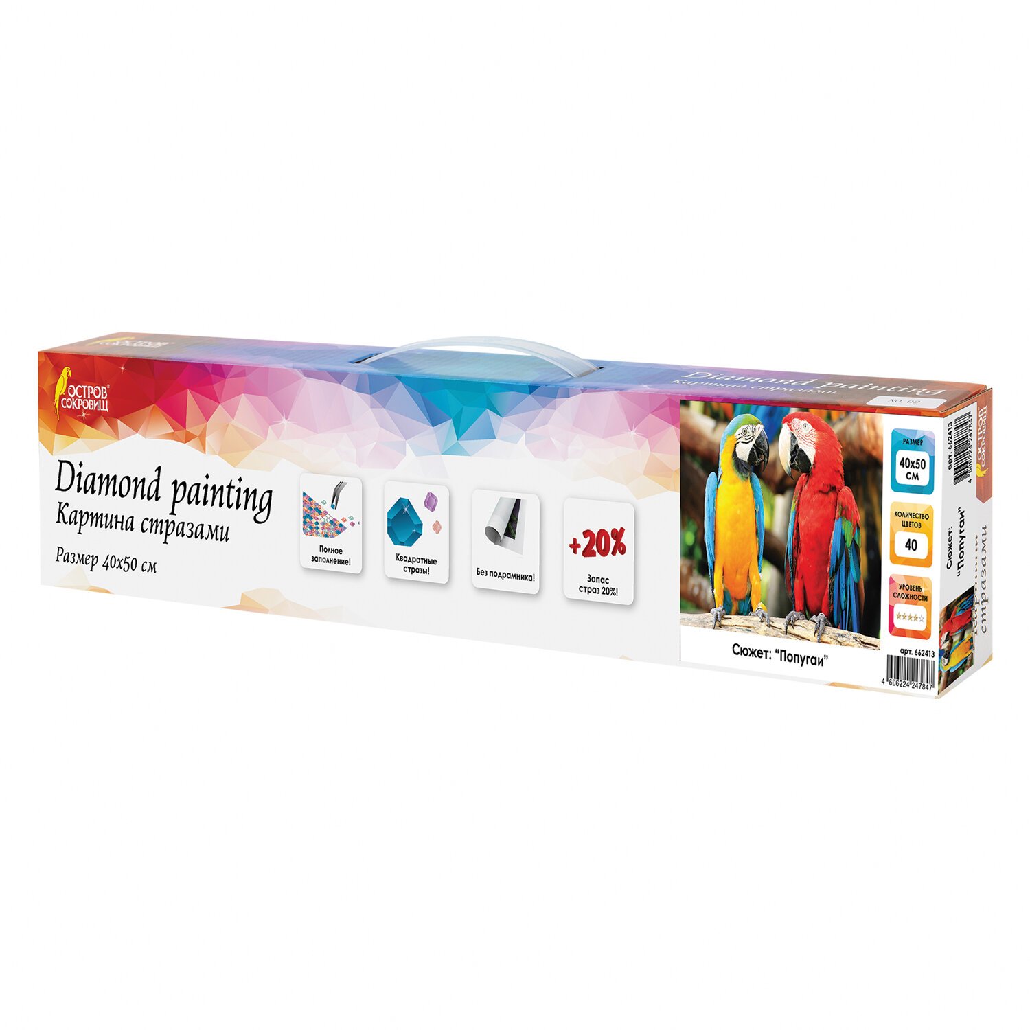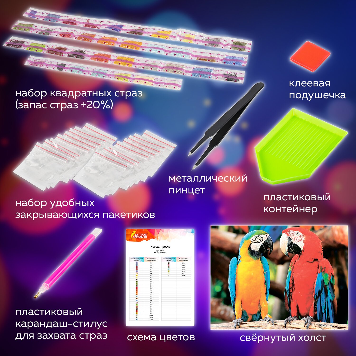 Картина стразами (алмазная мозаика) 40х50 см, ОСТРОВ СОКРОВИЩ "Попугаи", без подрамника, 662413