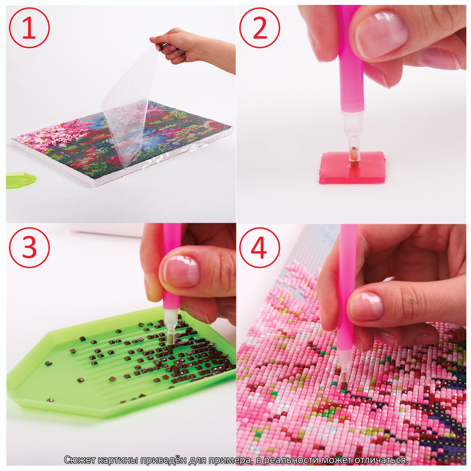 Техника алмазной мозаики проста в исполнении и не требует владения никакими специальными навыками. Все необходимые для работы материалы и инструменты входят в набор, подробная инструкция находится внутри упаковки.