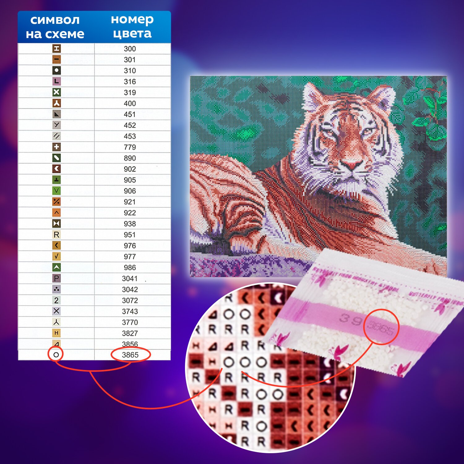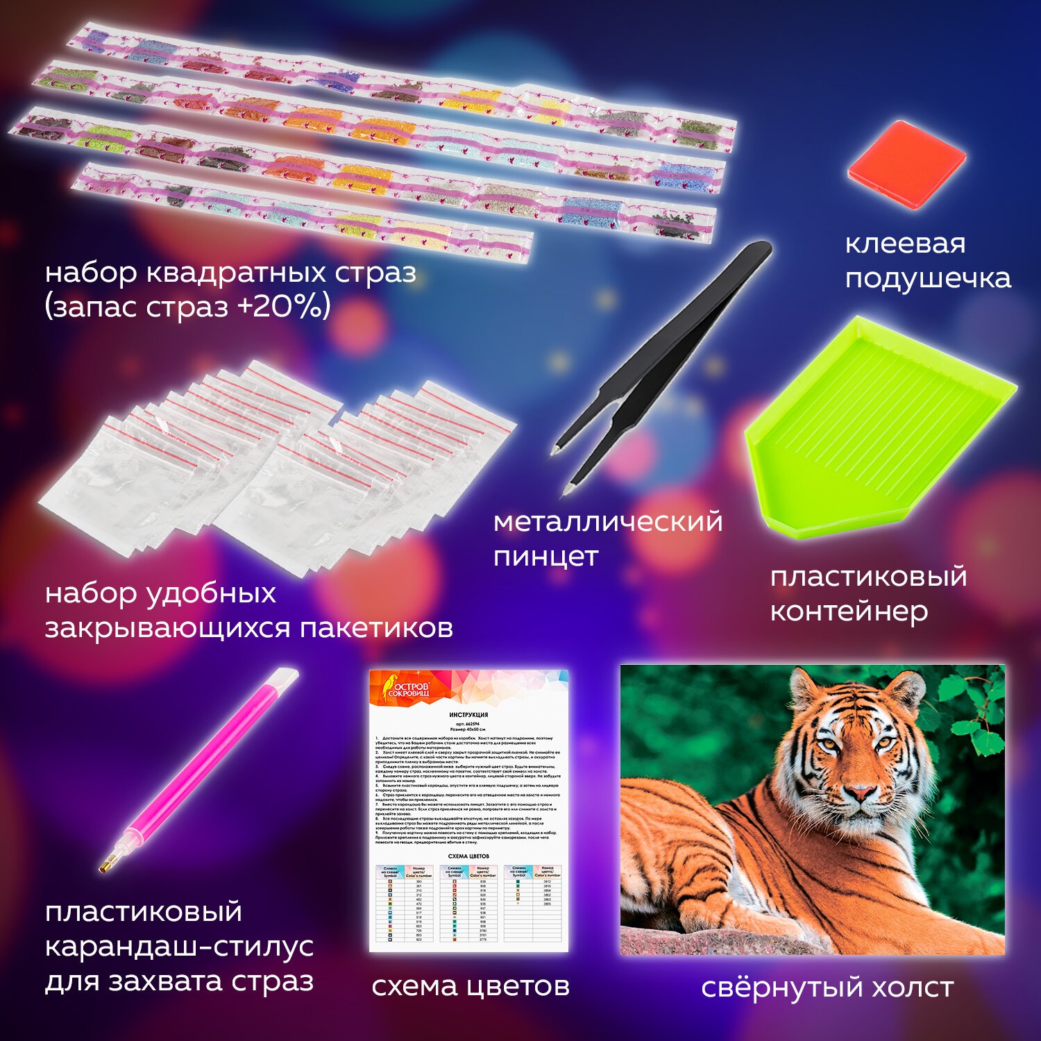 Картина стразами (алмазная мозаика) 40х50 см, ОСТРОВ СОКРОВИЩ "Тигр", на подрамнике, 662427