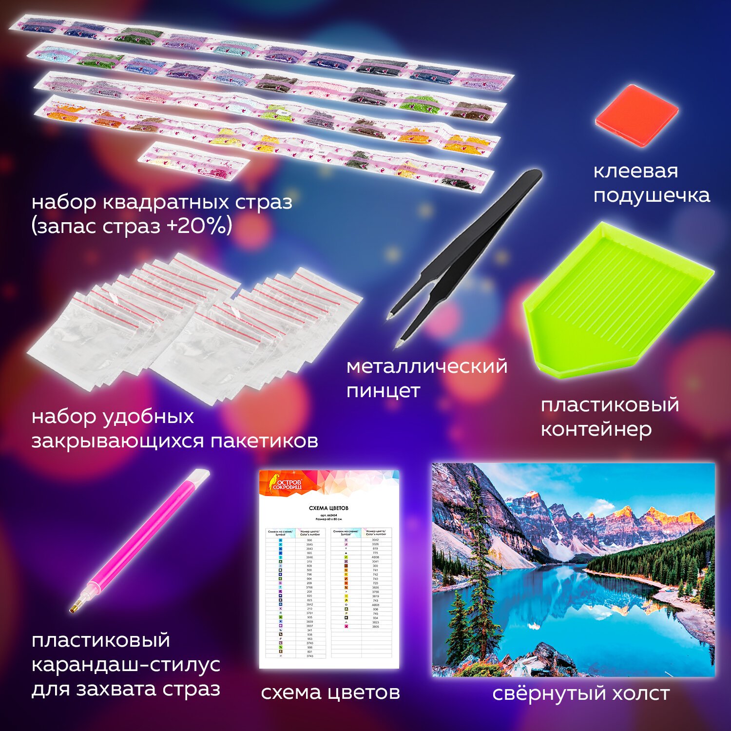 Картина стразами ОСТРОВ СОКРОВИЩ - это набор для создания картины в технике алмазной мозаики. Холст с нанесенным изображением и клеевым слоем заполняется акриловыми стразами. В наборе содержится всё необходимое для создания шедевра своими руками.