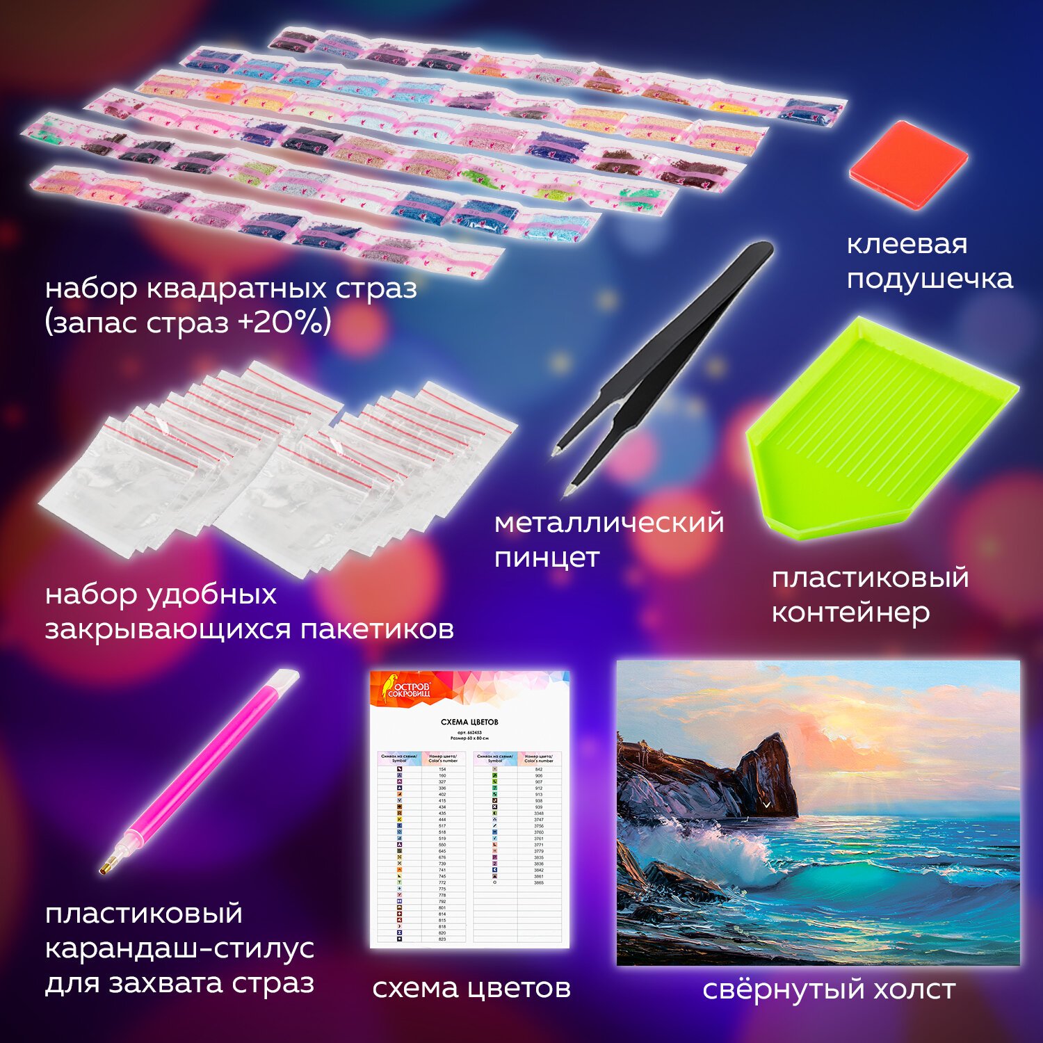 Картина стразами ОСТРОВ СОКРОВИЩ - это набор для создания картины в технике алмазной мозаики. Холст с нанесенным изображением и клеевым слоем заполняется акриловыми стразами. В наборе содержится всё необходимое для создания шедевра своими руками.