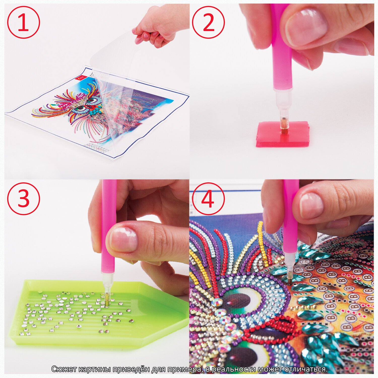 - набор сияющих страз разных цветов, пронумерованных в соответствии со схемой;