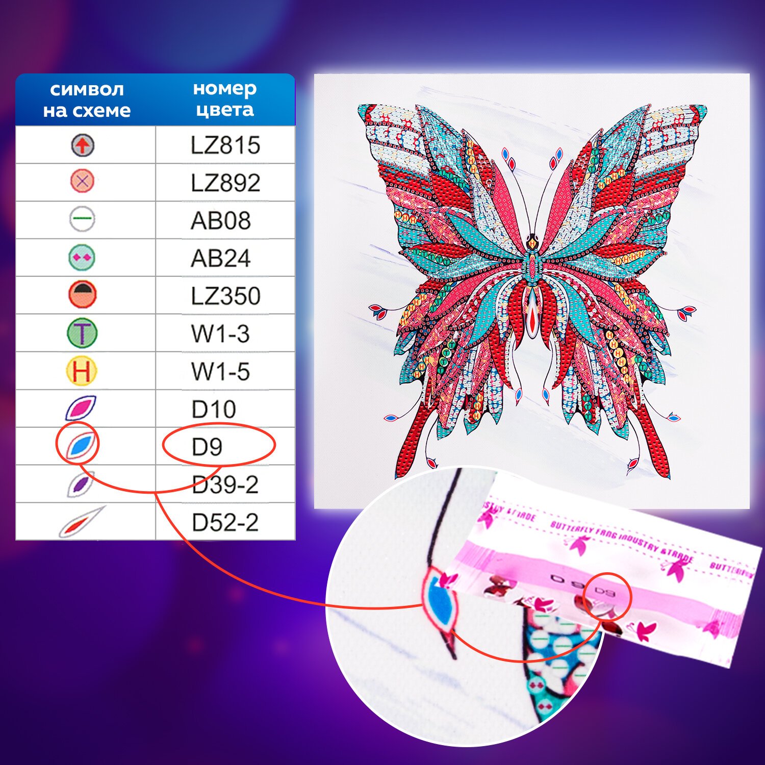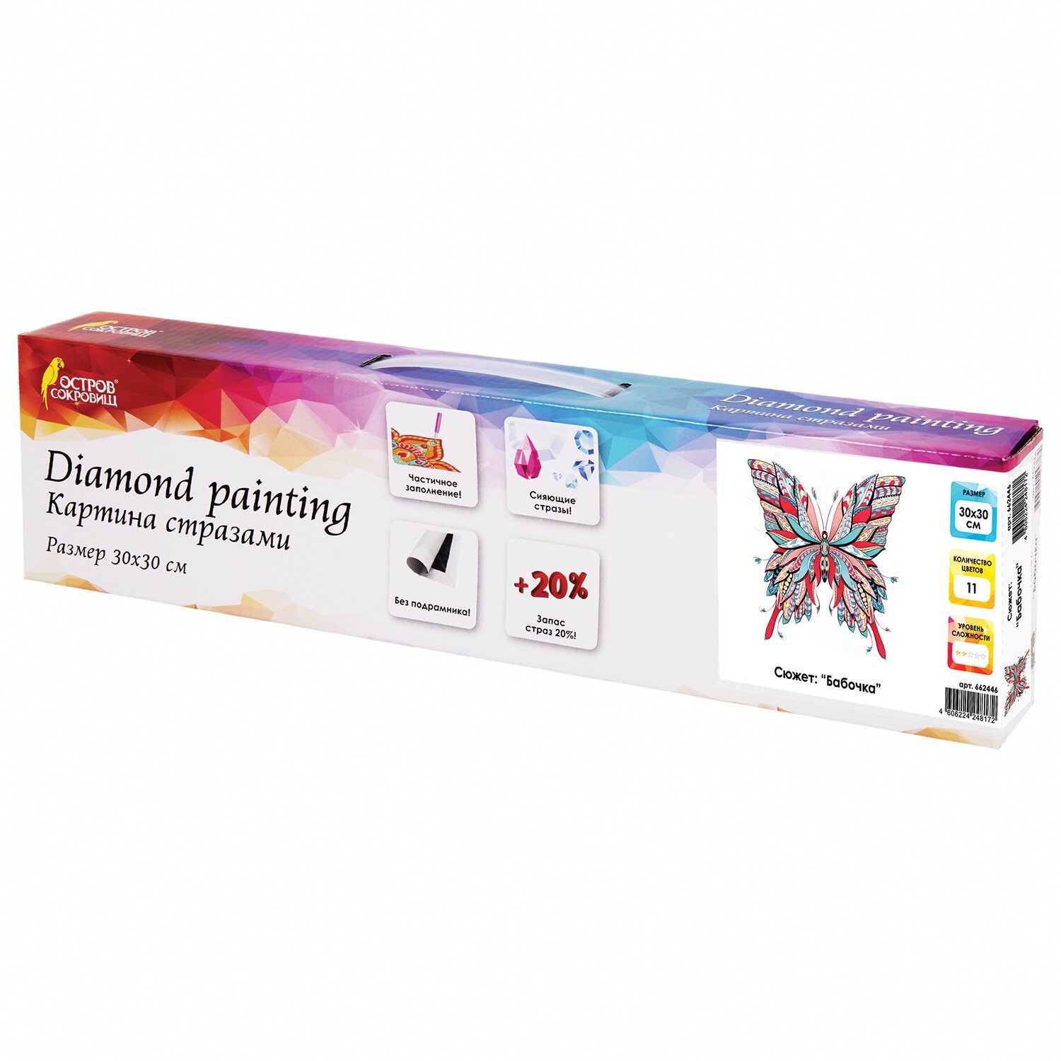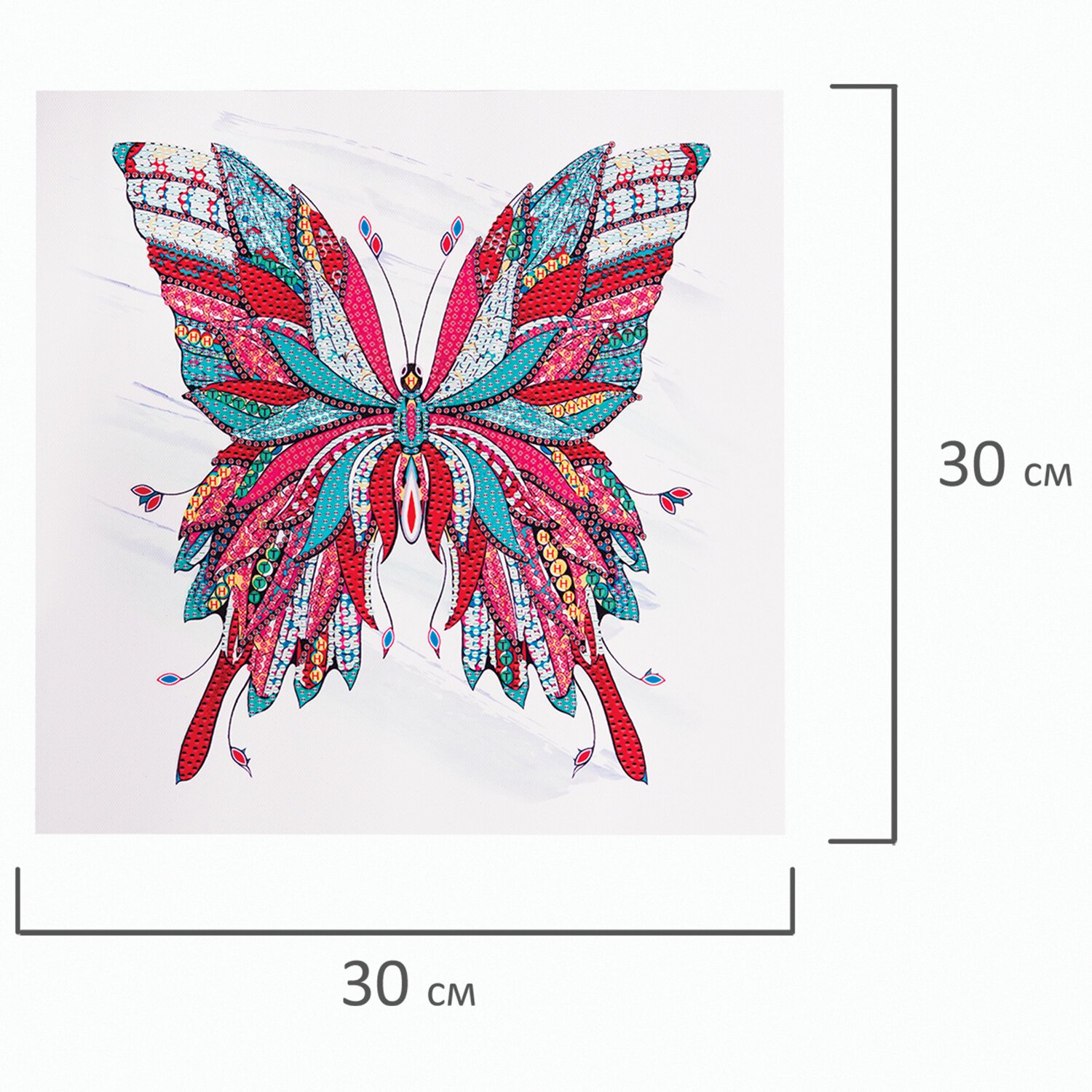 Картина стразами (алмазная мозаика) сияющая 30х30 см, ОСТРОВ СОКРОВИЩ "Бабочка", без подрамника, 662446
