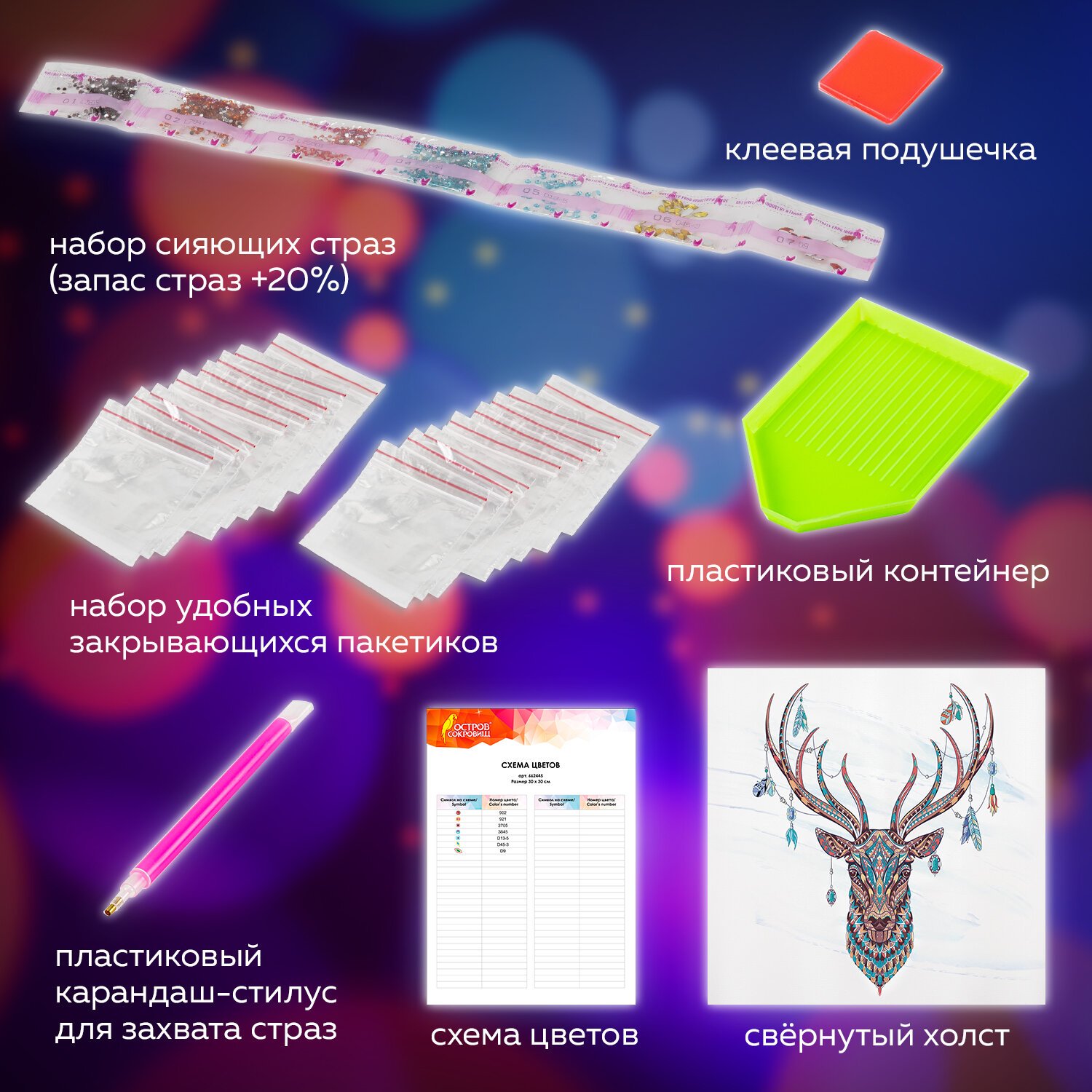- набор сияющих страз разных цветов, пронумерованных в соответствии со схемой;