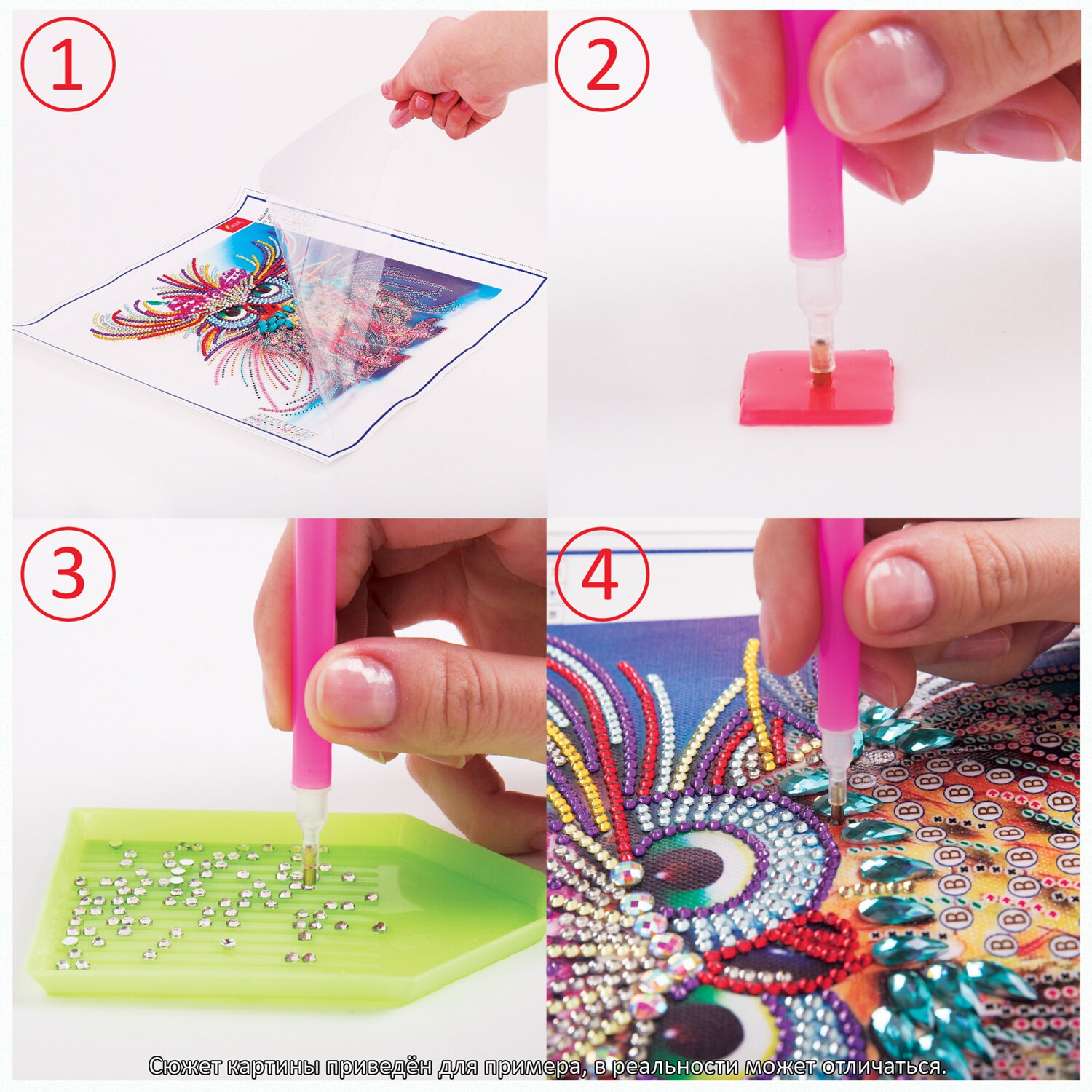 Техника алмазной мозаики проста в исполнении и не требует владения никакими специальными навыками. Все необходимые для работы материалы и инструменты входят в набор, с подробной инструкцией можно ознакомиться на упаковке.