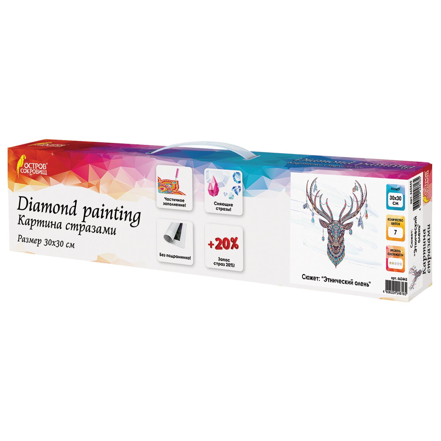 Картина стразами (алмазная мозаика) сияющая 30х30 см, ОСТРОВ СОКРОВИЩ "Этнический олень", без подрамника, 662445