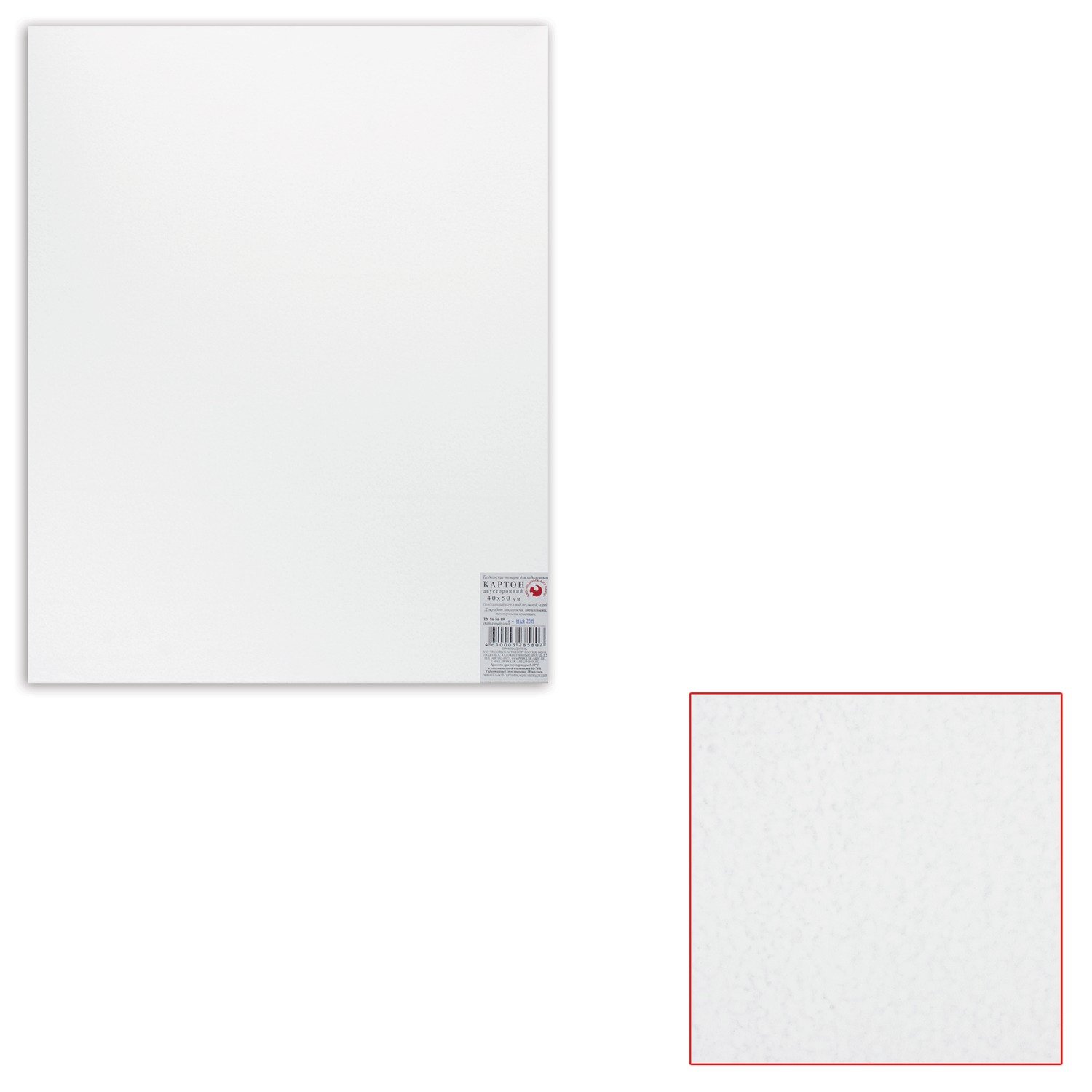 Картон белый грунтованный для живописи, 40х50 см, двусторонний, толщина 2 мм, акриловый грунт