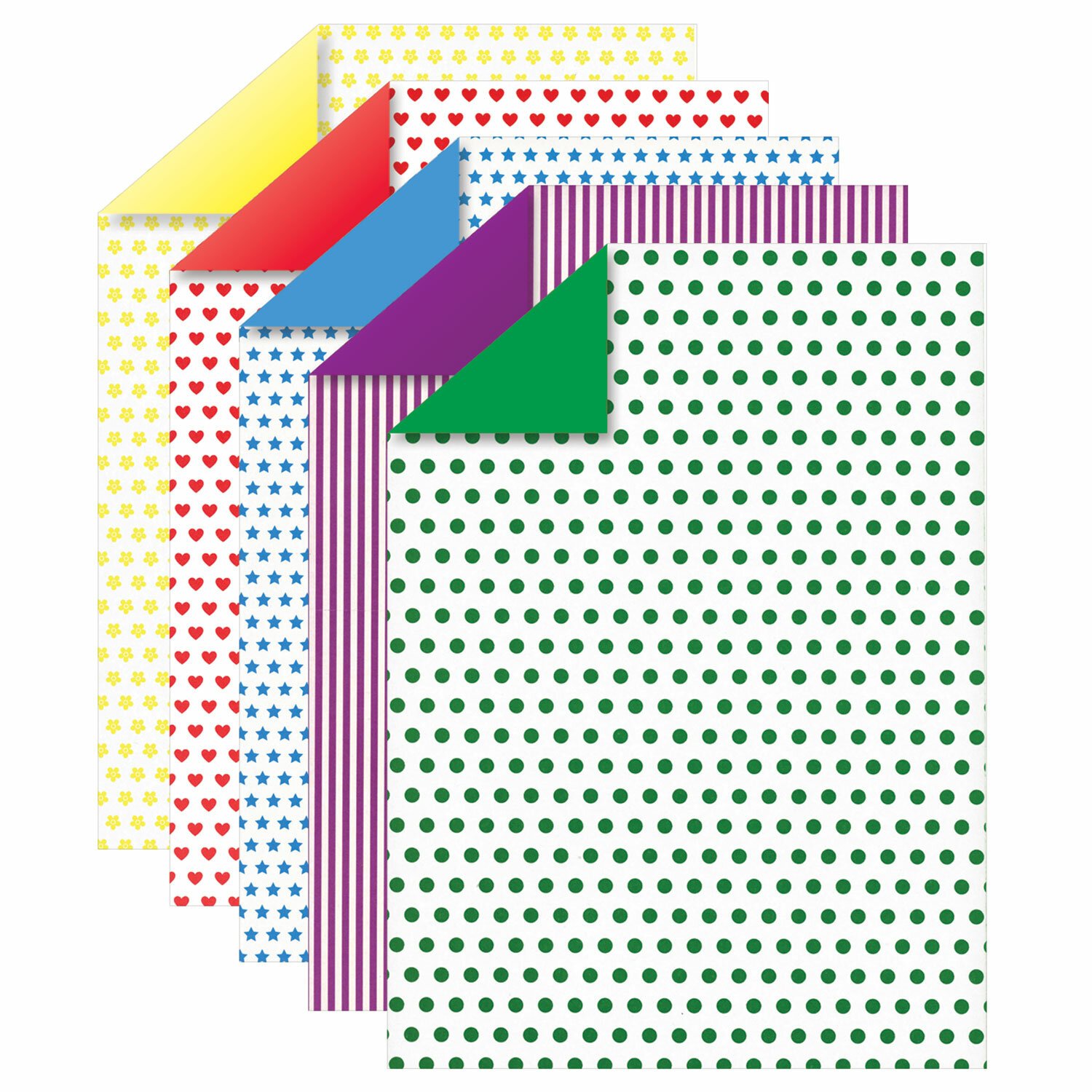 Мелованный двусторонний картон ЮНЛАНДИЯ с улучшенной прокраской обладает плотностью 200 г/м2, имеет глянцевую поверхность с одной стороны и матовую с другой, благодаря чему сохраняет четкость, яркость и насыщенность оттенка на протяжении длительного времени. Картон легко режется ножницами, сгибается и клеится. Внутренний блок состоит из 5 листов формата А4 и 5 цветов с рисунками на обороте (звездочки, горошек, полоски, сердечки, цветочки). Используя их, ребёнок без труда сможет сделать аппликацию или воплотить в жизнь любую творческую задумку.