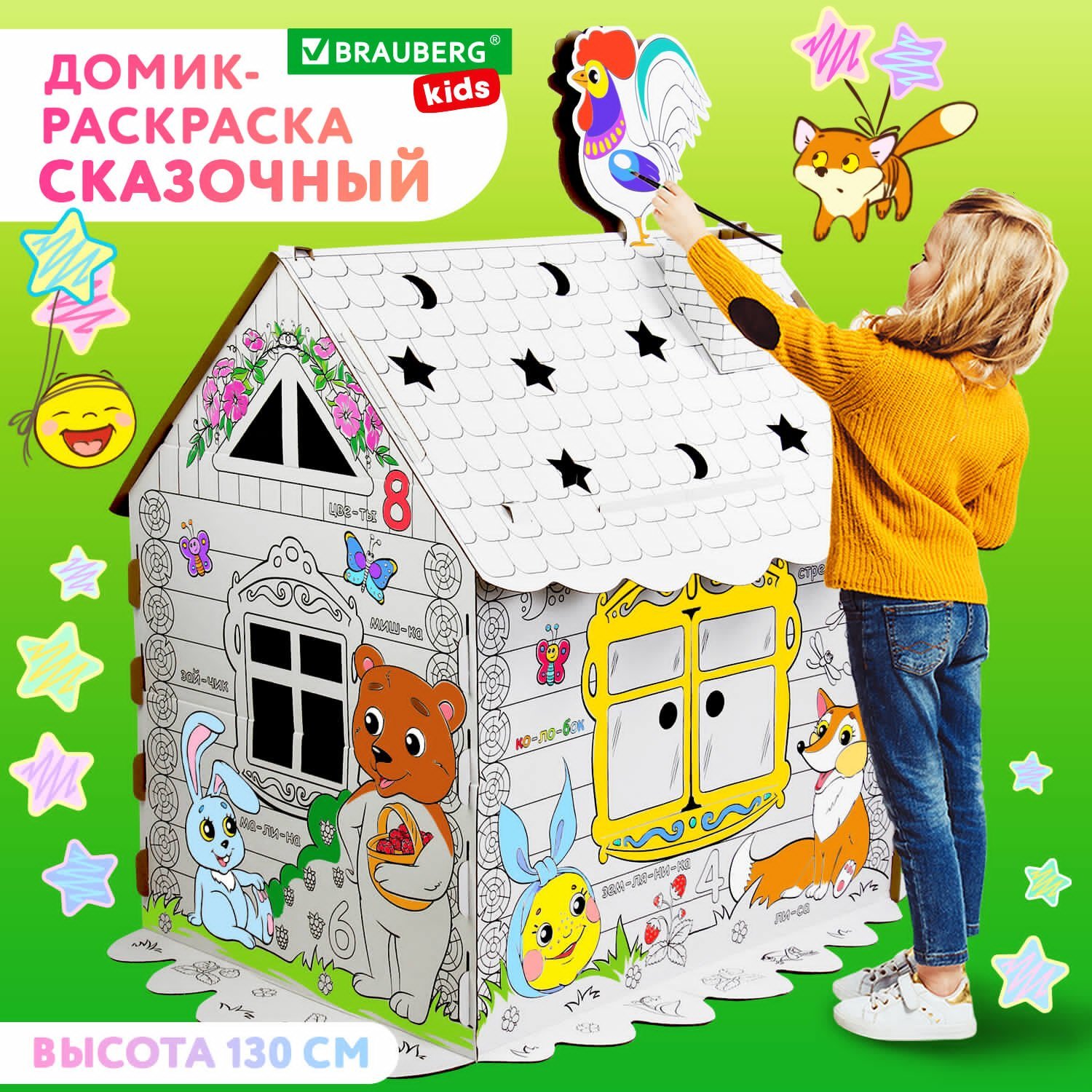 Картонный игровой развивающий Домик-раскраска "Сказочный", высота 130 см, BRAUBERG Kids, 880364