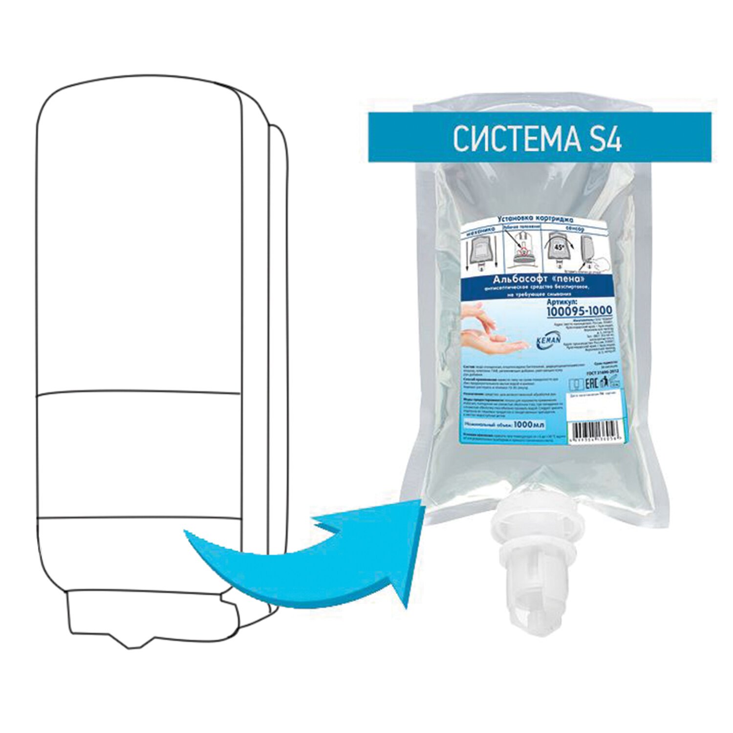 Картридж с жидким мылом-пеной одноразовый (Система S4), "Нейтральное", синее, 1 л, KEMAN, 100105-1000