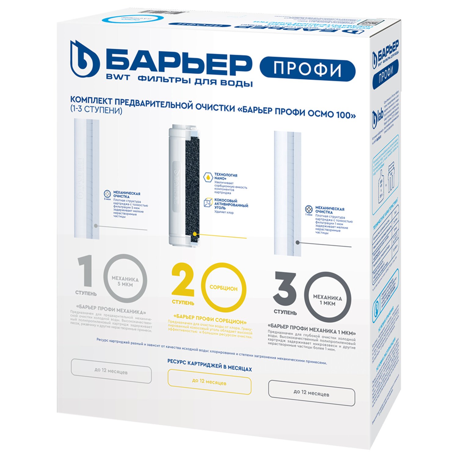 Картриджи сменные БАРЬЕР "ПРОФИ Осмо Предфильтр", 1-3 ступени, ресурс 20000, Р153Р00