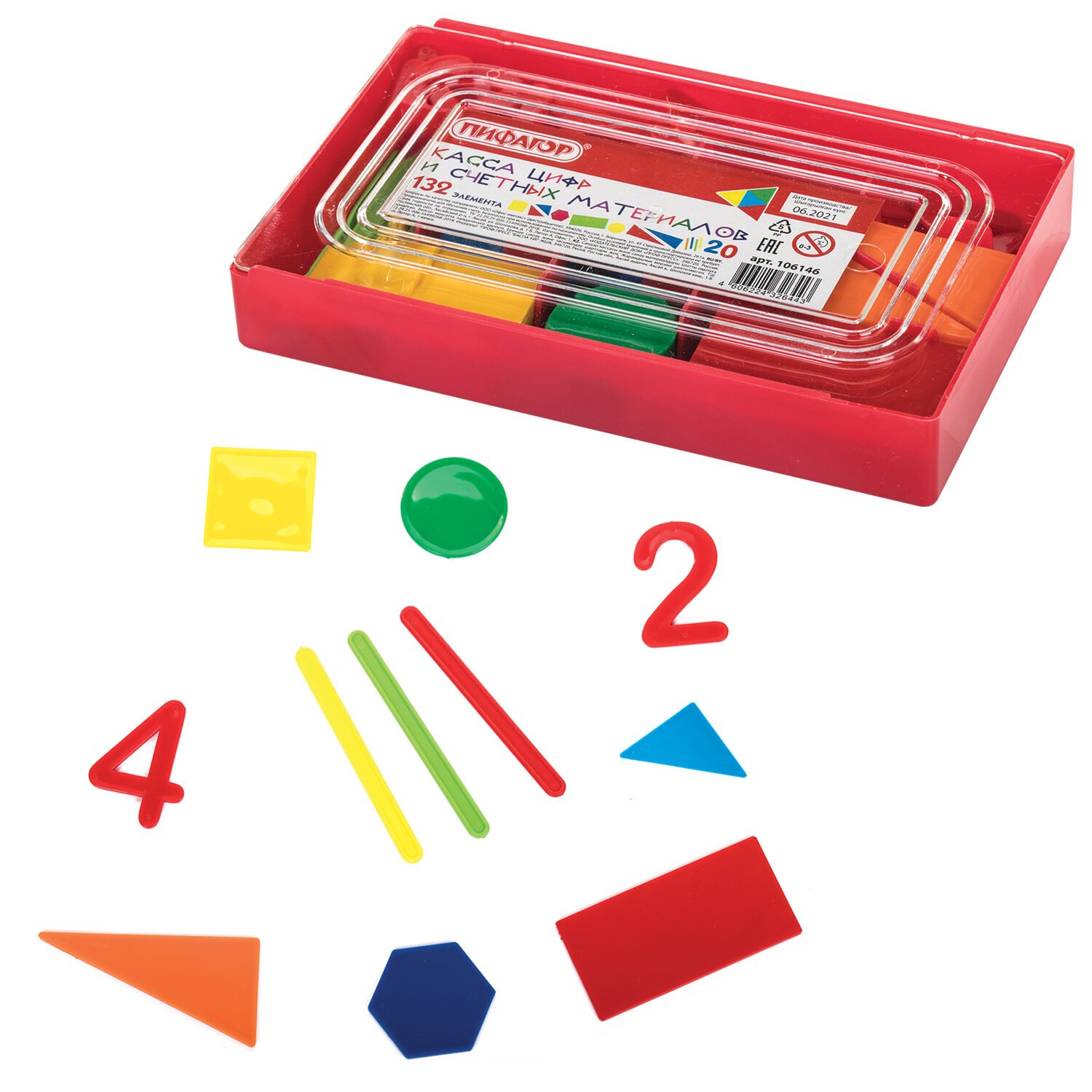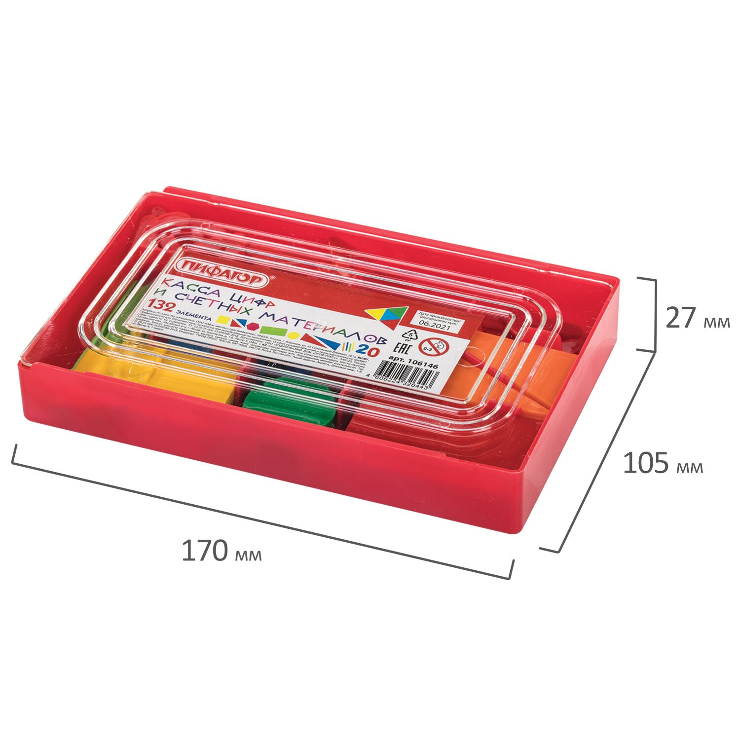 Касса цифр и счетных материалов 132 элемента, пенал, ПИФАГОР, 106146