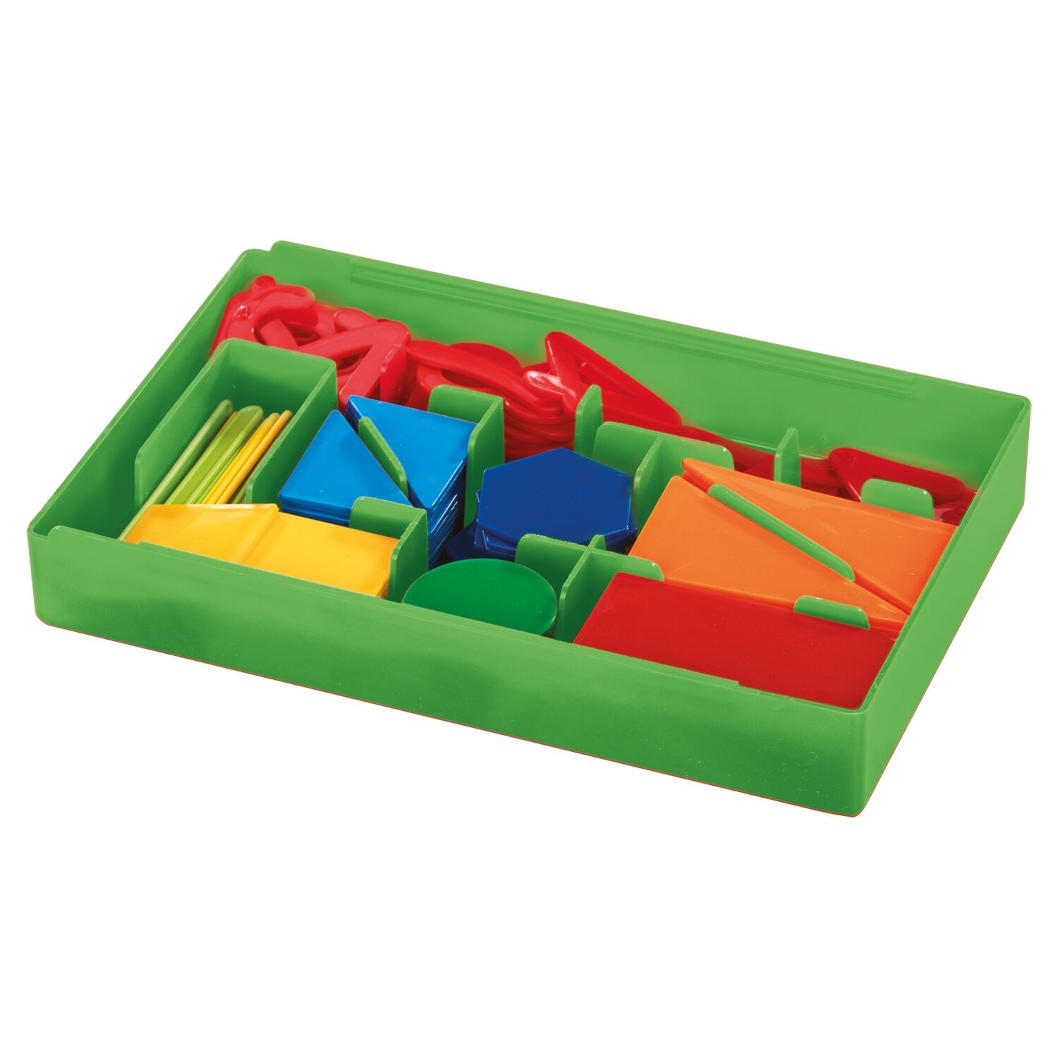 Элементы с закругленными углами изготовлены на современном оборудовании из пластика, безопасного для здоровья детей. Все элементы набора уложены в удобный пластиковый пенал со специальными перегородками, препятствующими перемешиванию деталей. Набор предназначен для детей старше 3-х лет.