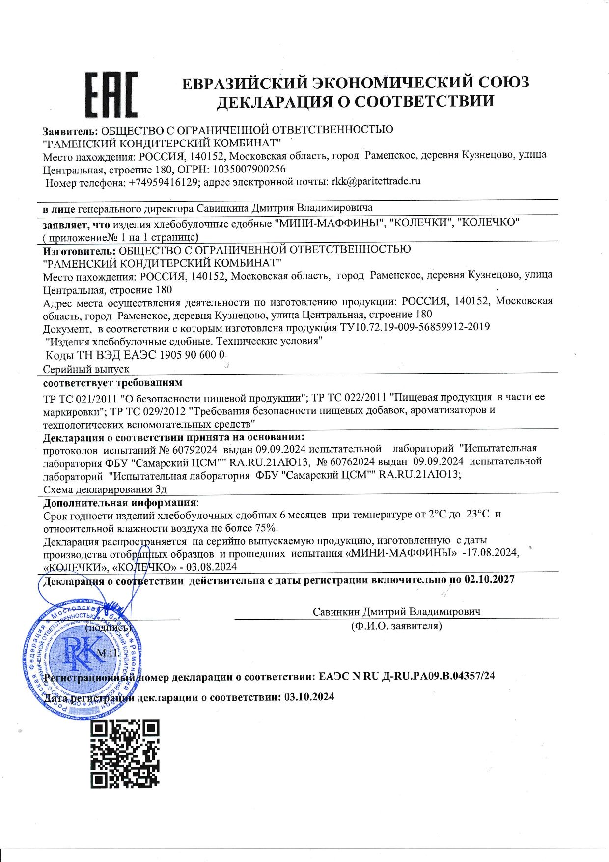 | Фирма-производитель | Раменский КК |