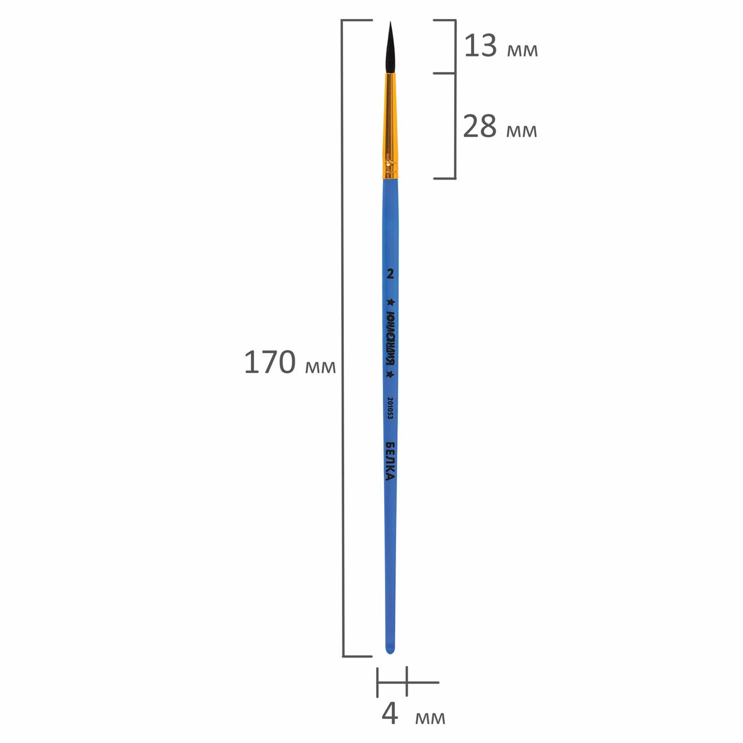 Кисть БЕЛКА, круглая, № 2, цветная ручка, ЮНЛАНДИЯ, 201053