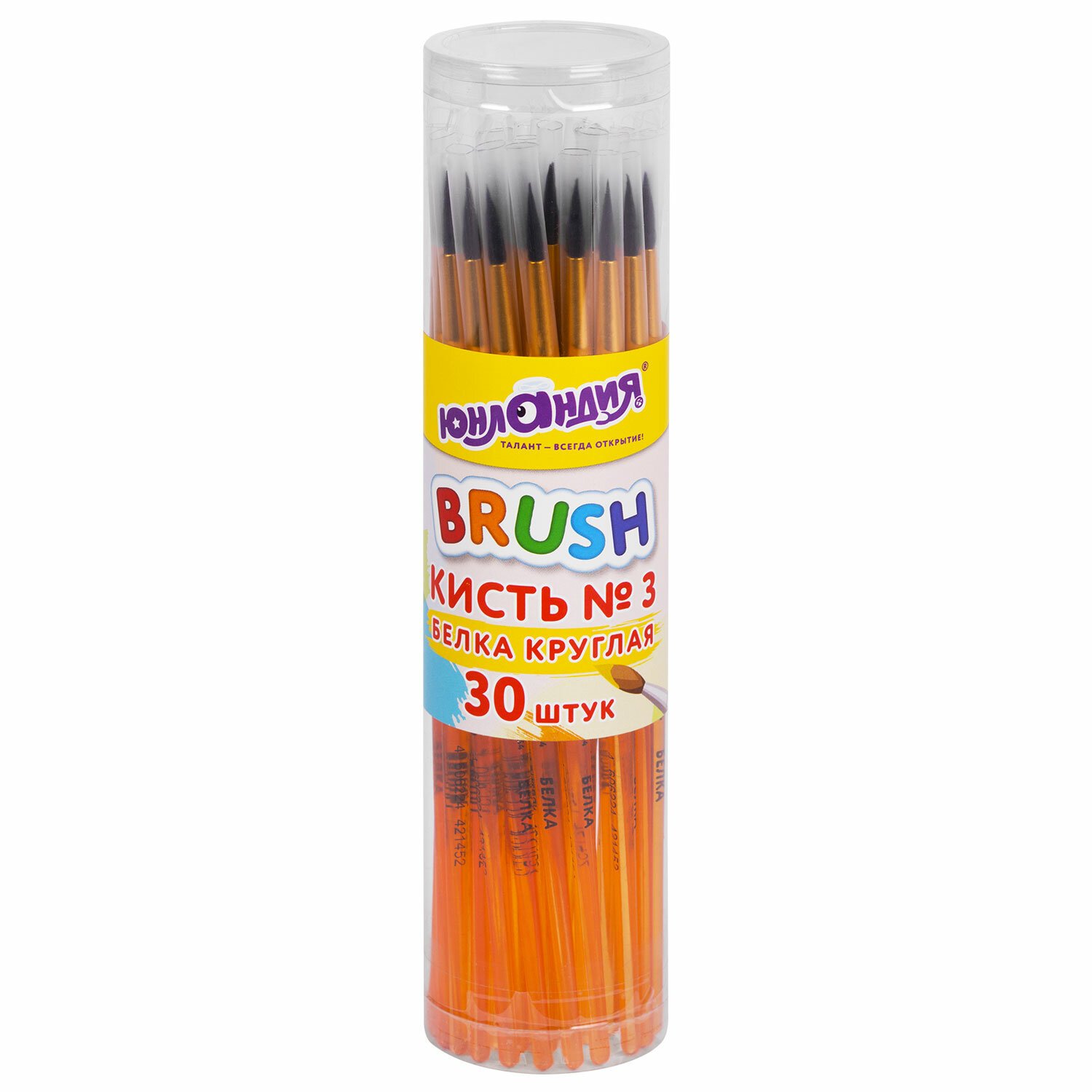 Кисть БЕЛКА, круглая, № 3, цветная ручка, ЮНЛАНДИЯ, 201054