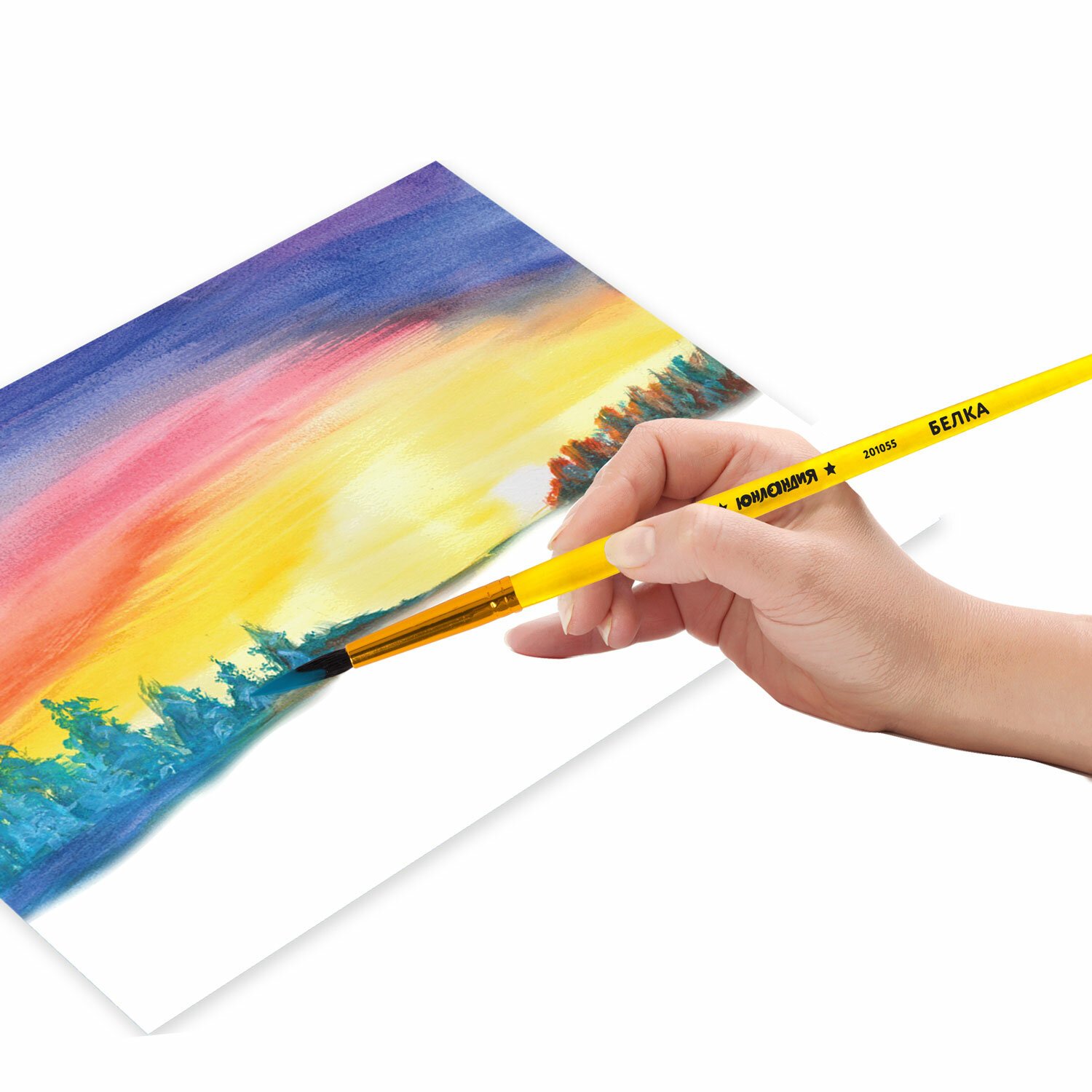 Кисть БЕЛКА, круглая, № 1, цветная ручка, ЮНЛАНДИЯ, 201052