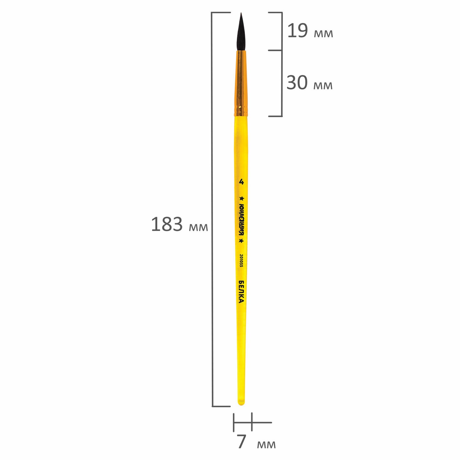 Кисть БЕЛКА, круглая, № 4, цветная ручка, ЮНЛАНДИЯ, 201055