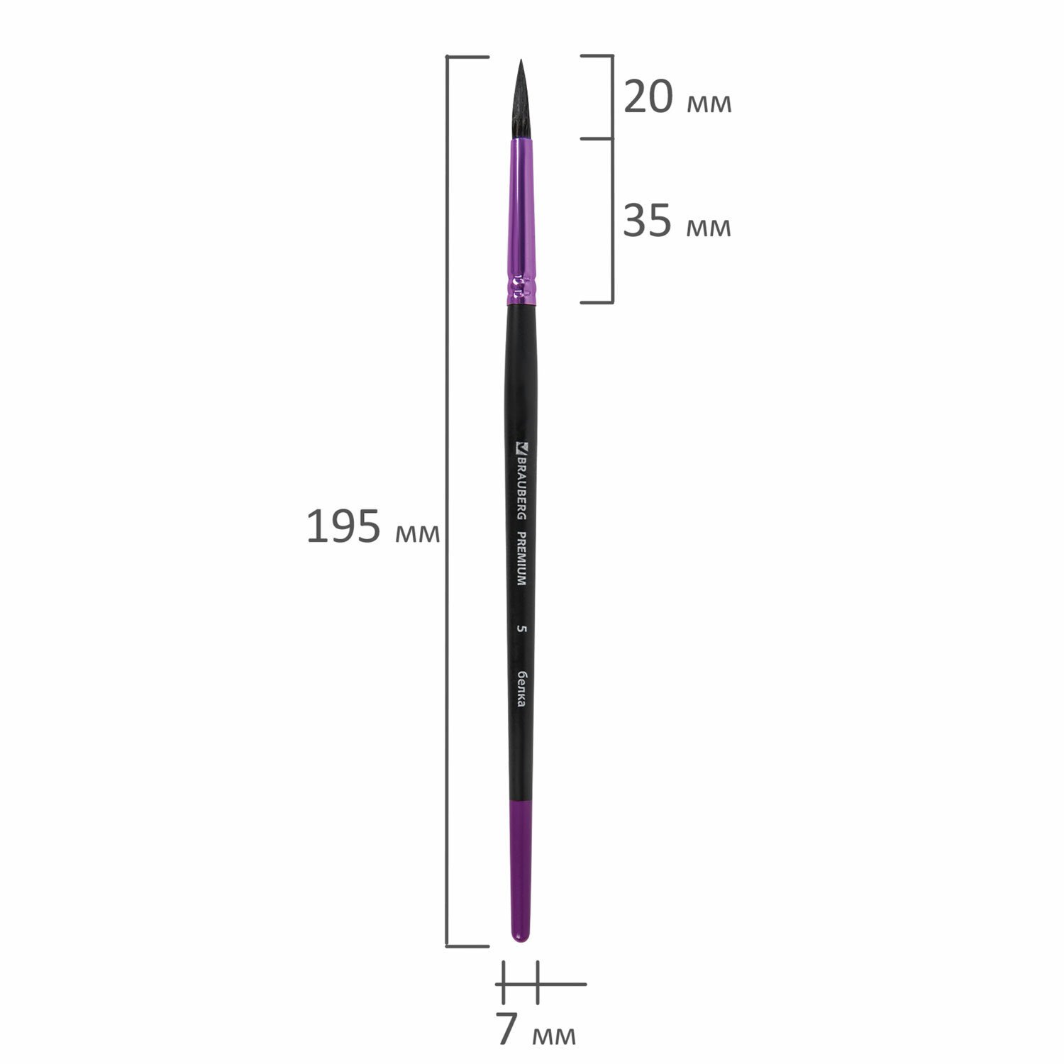 Кисть белка, круглая № 7, BRAUBERG PREMIUM, 200976