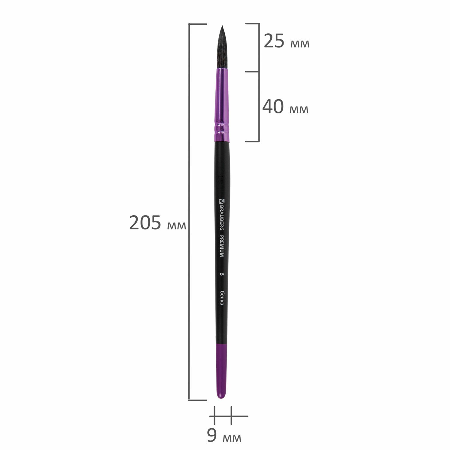 Кисть белка, круглая № 6, BRAUBERG PREMIUM, 200975