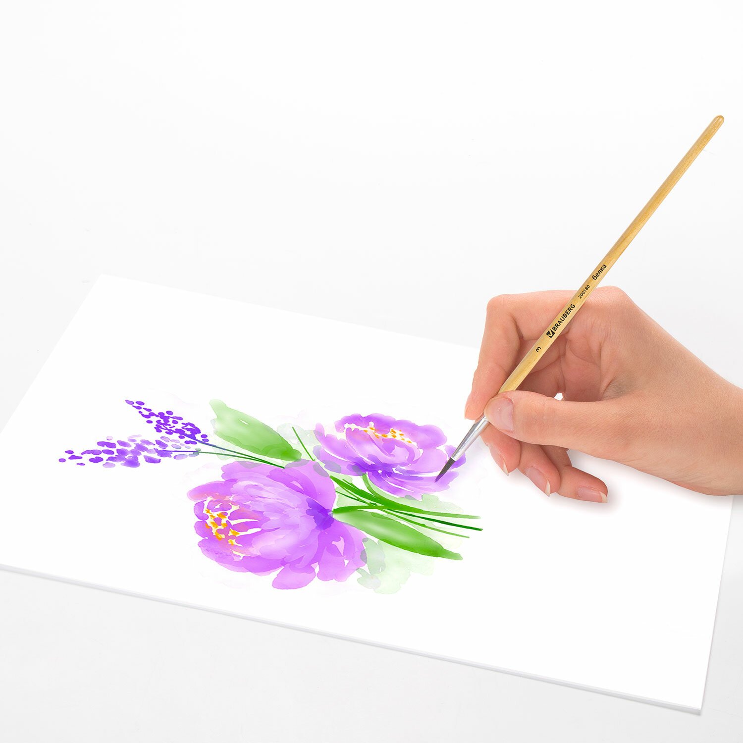 Кисть BRAUBERG № 3 подходит для работы с акварелью, гуашью, тушью, а также для прорисовывания различных деталей рисунка. Снабжена защитным пластиковым колпачком.