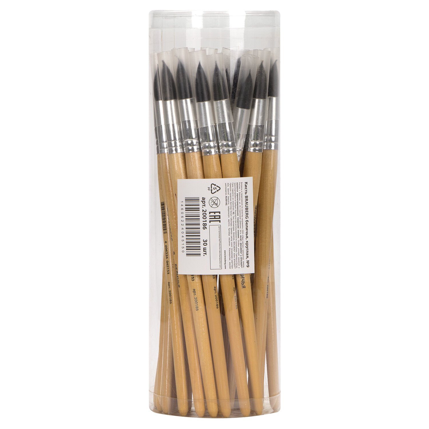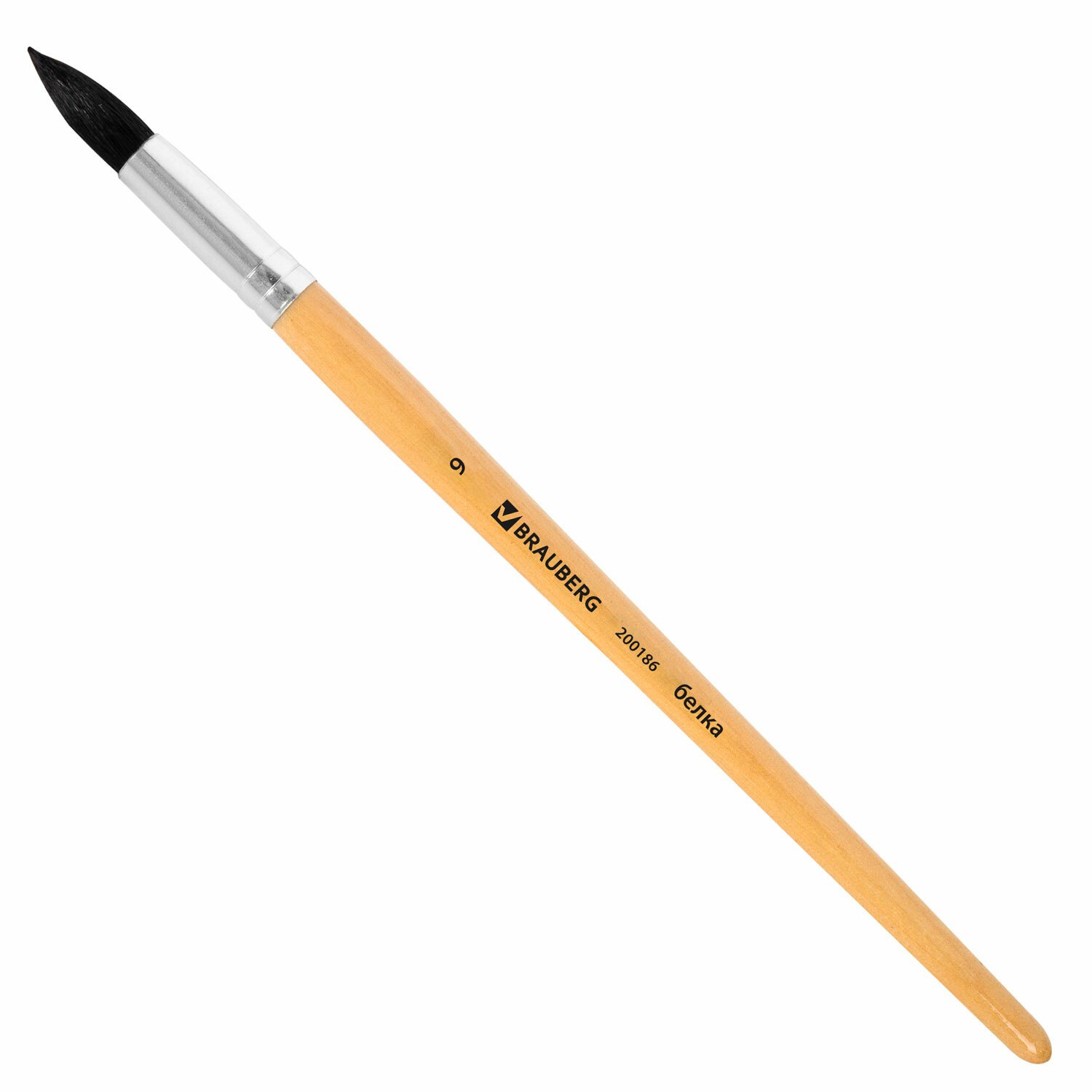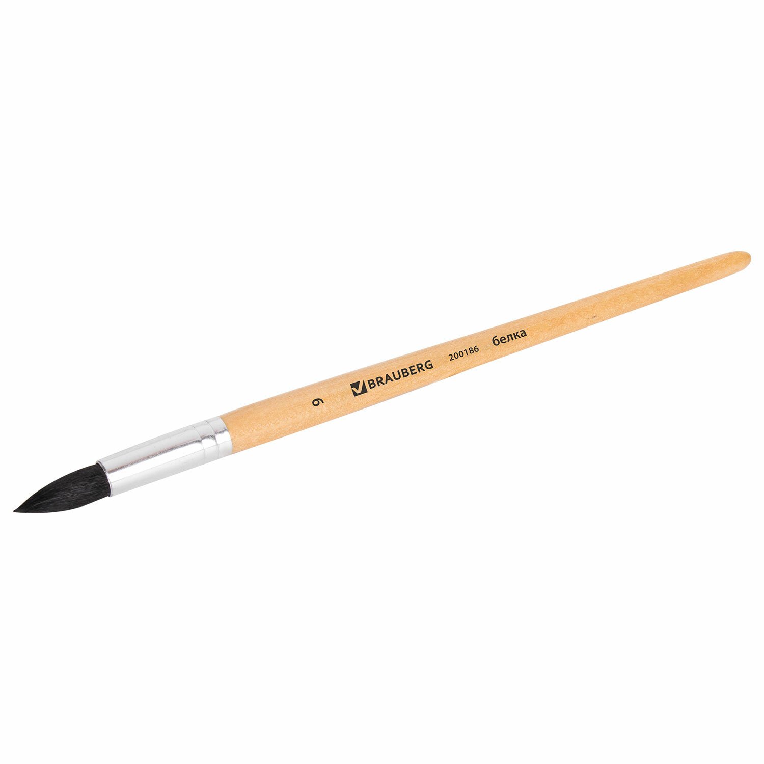 Кисть BRAUBERG, белка, круглая, № 9, 200186