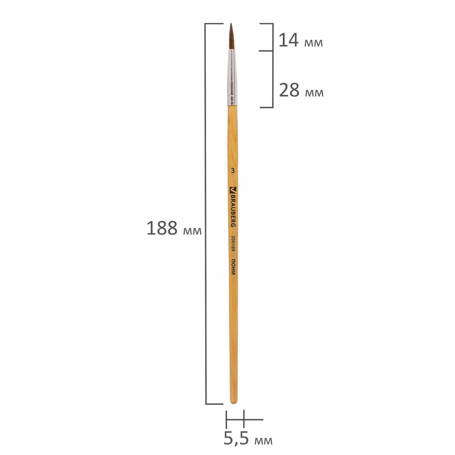 Кисть BRAUBERG, пони, круглая, № 3, 200189