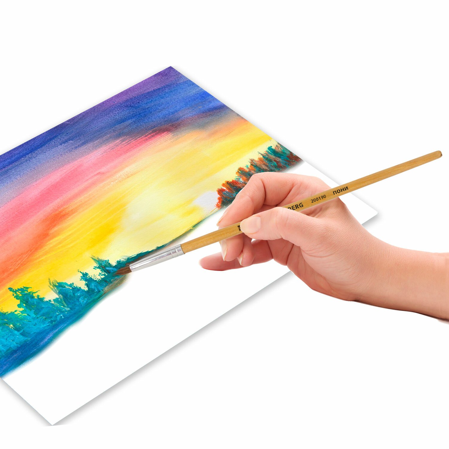 Кисть BRAUBERG № 4 подходит для работы с акварелью, гуашью, тушью, а также для прорисовывания различных деталей рисунка. Снабжена защитным пластиковым колпачком.