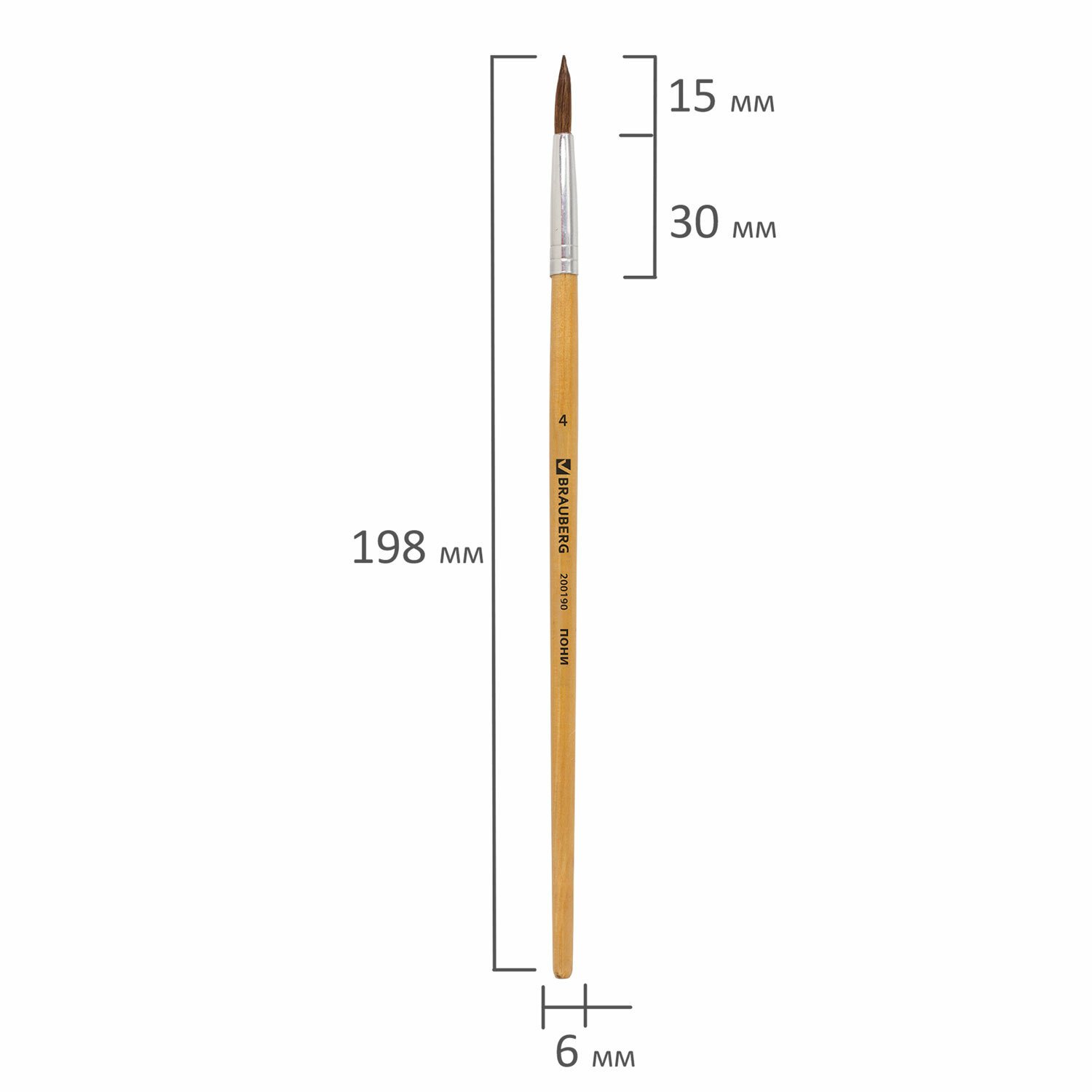 Кисть BRAUBERG, пони, круглая, № 4, 200190