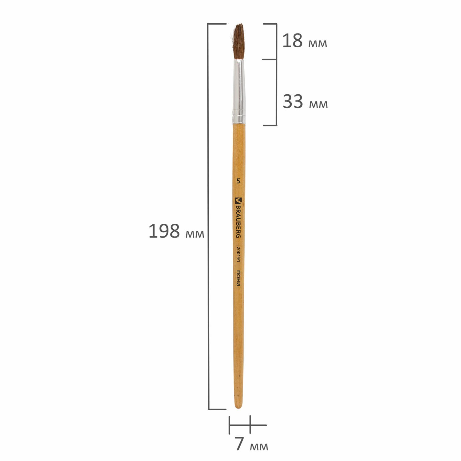 Кисть BRAUBERG, пони, круглая, № 5, 200191