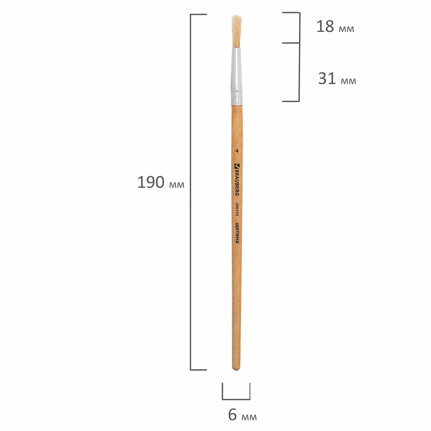 Кисть BRAUBERG, щетина, круглая, № 4, 200195