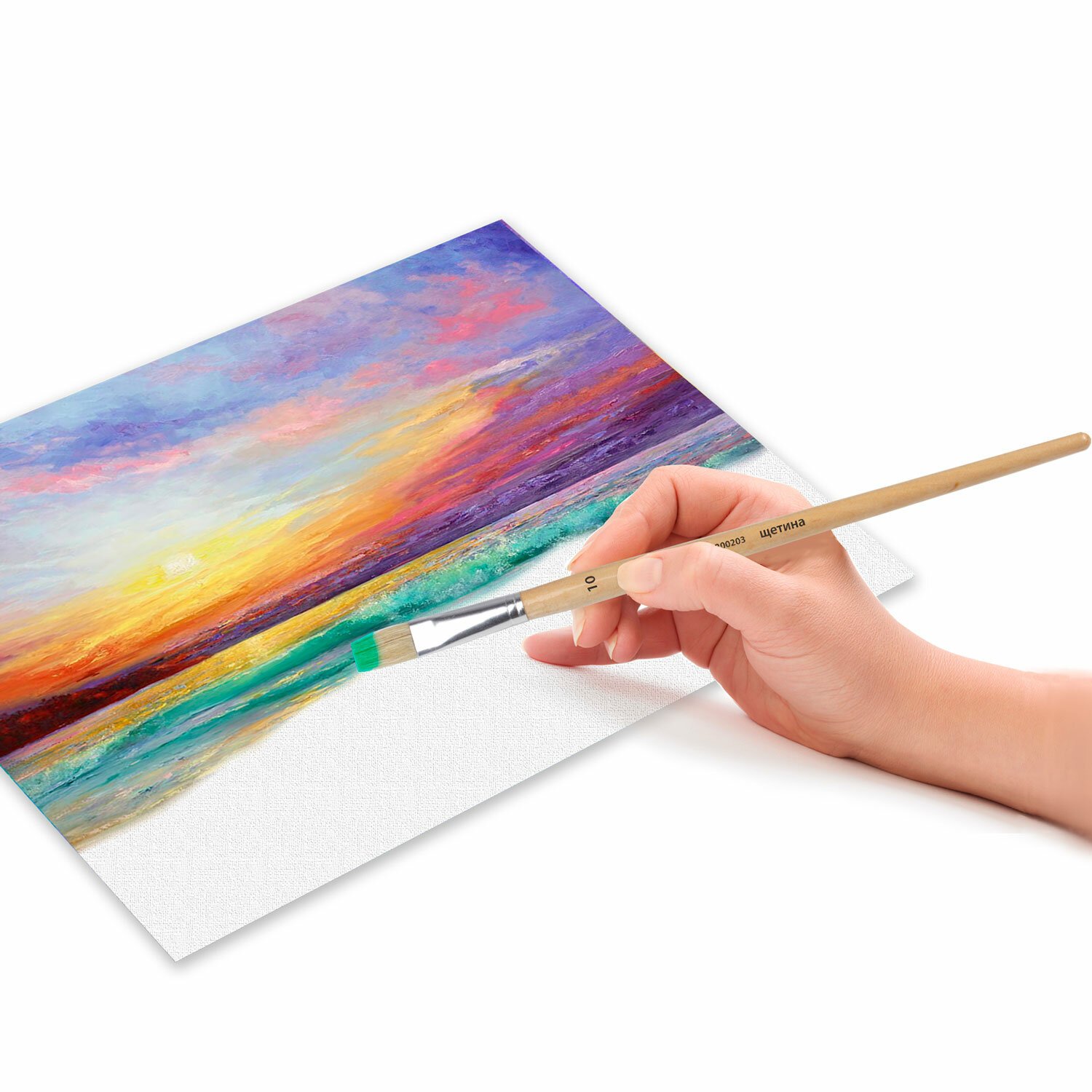 Кисть из щетины обладает высокой упругостью, хорошо держит форму, долговечна и надежна. Кисть № 10 позволит прорисовывать детали и наносить крупные мазки и линии. Деревянную лакированную рукоятку кисти удобно держать в руке.