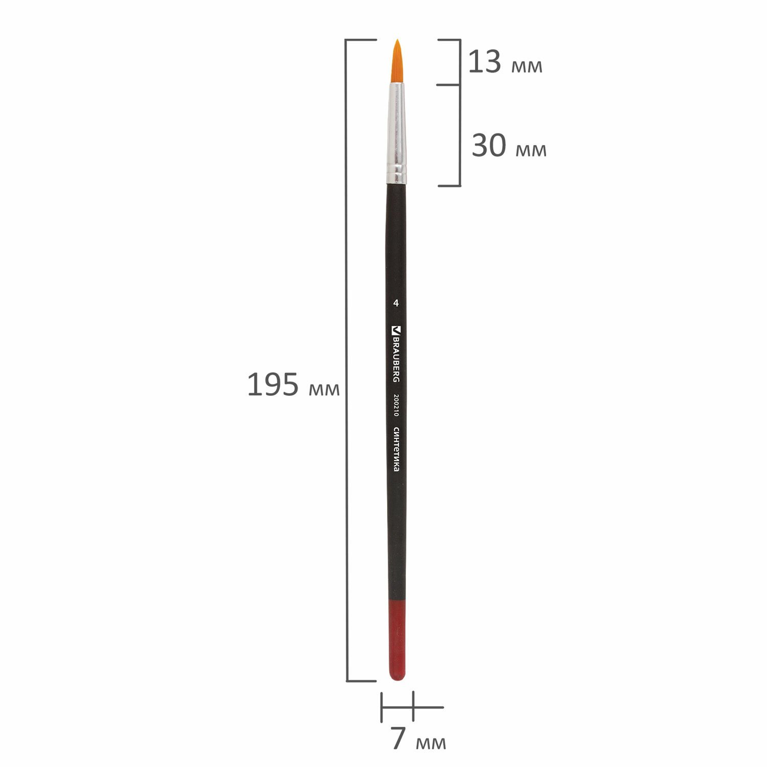 Кисть BRAUBERG, синтетика, круглая, № 4, 200210