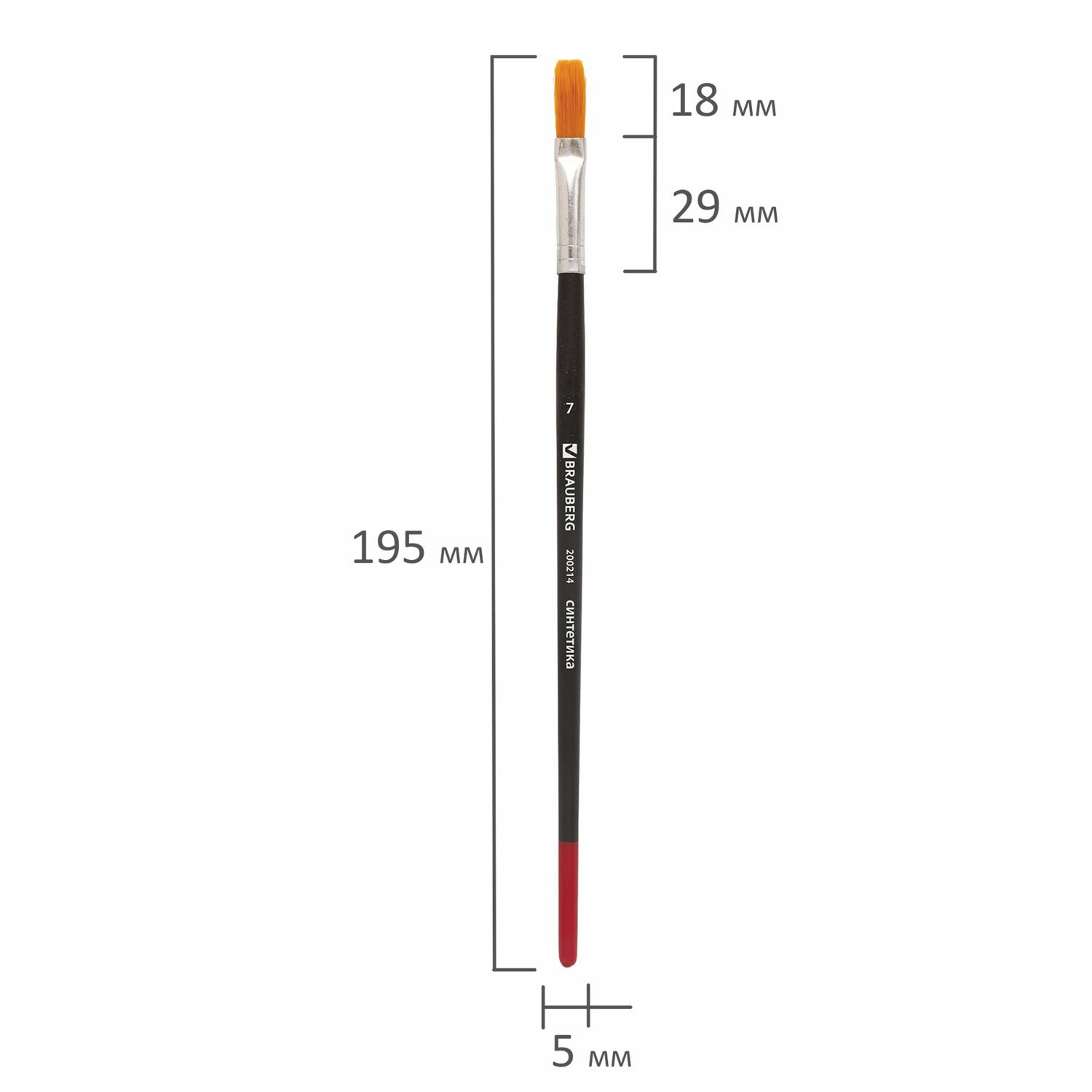 Кисть BRAUBERG, синтетика, плоская, № 7, 200214