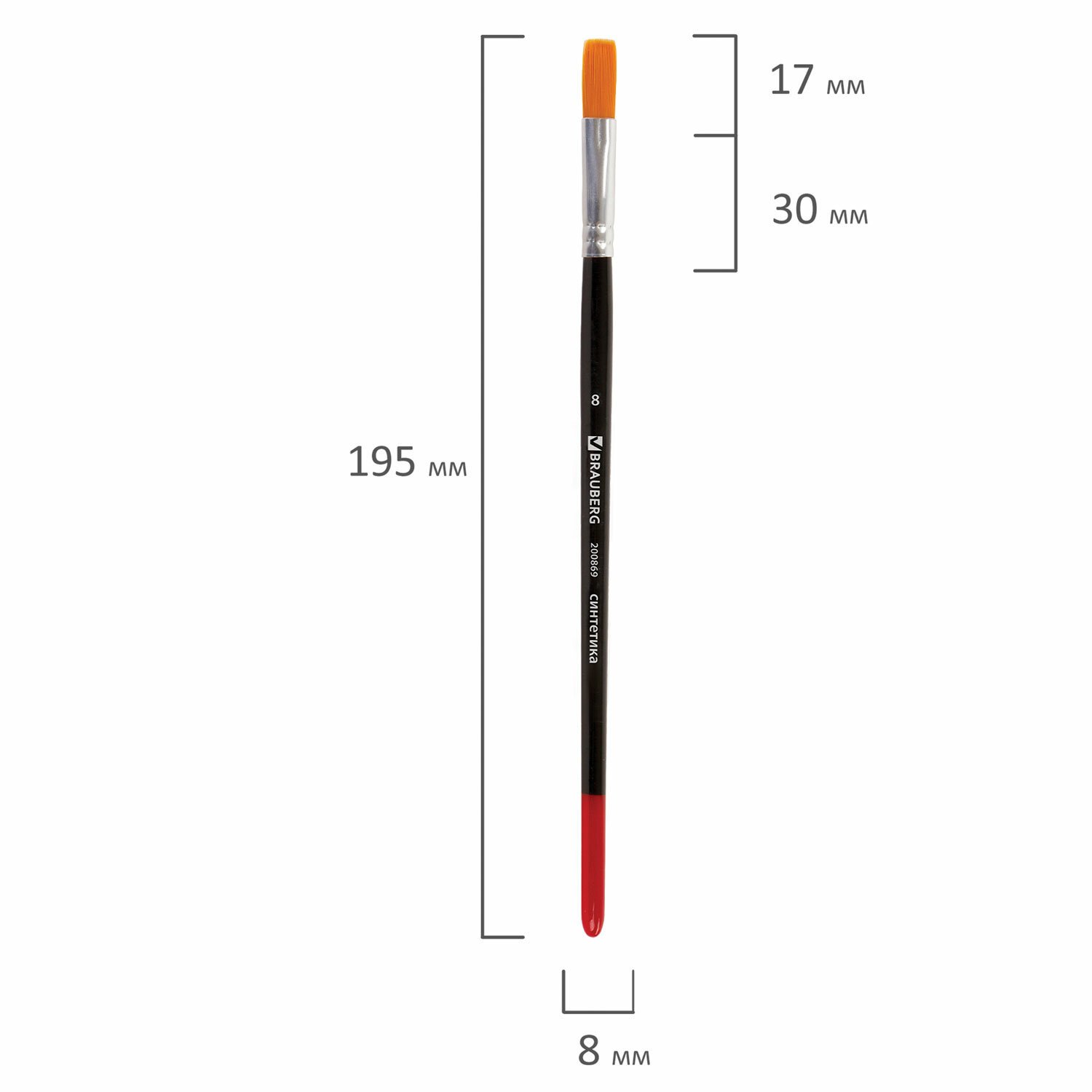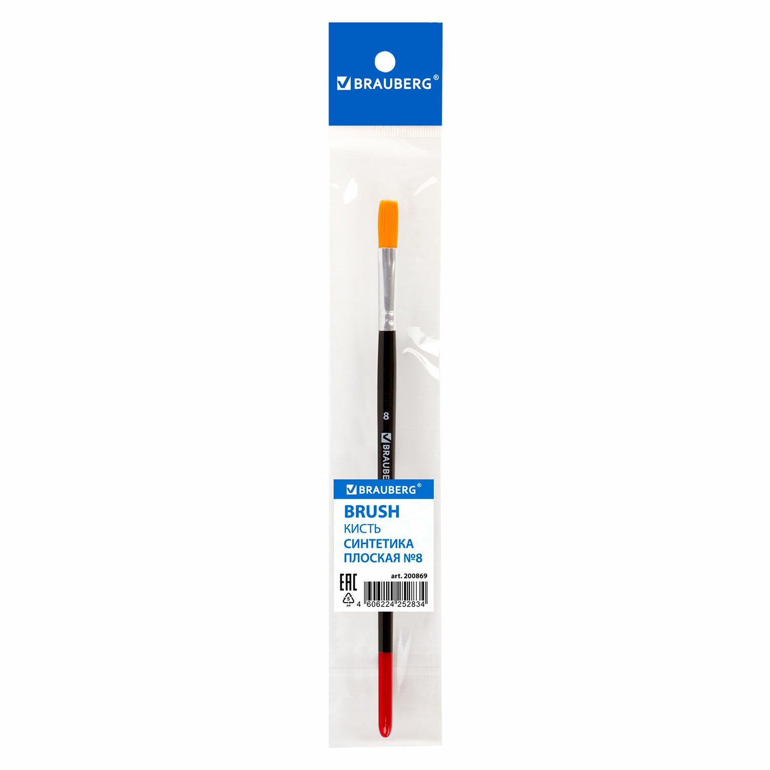 Кисть BRAUBERG синтетика, плоская, №8, 200869