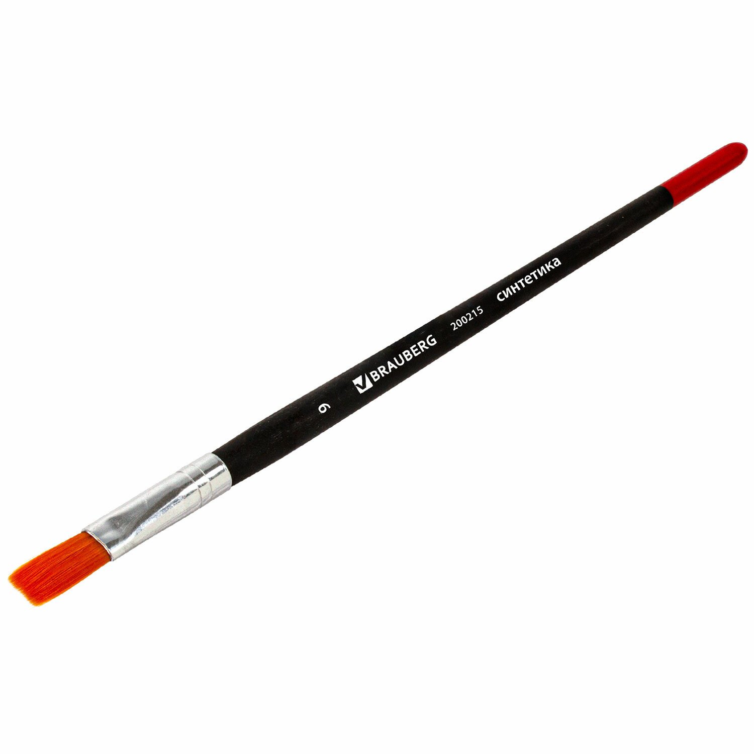 Кисть синтетика, плоская № 6, BRAUBERG PREMIUM, 201015