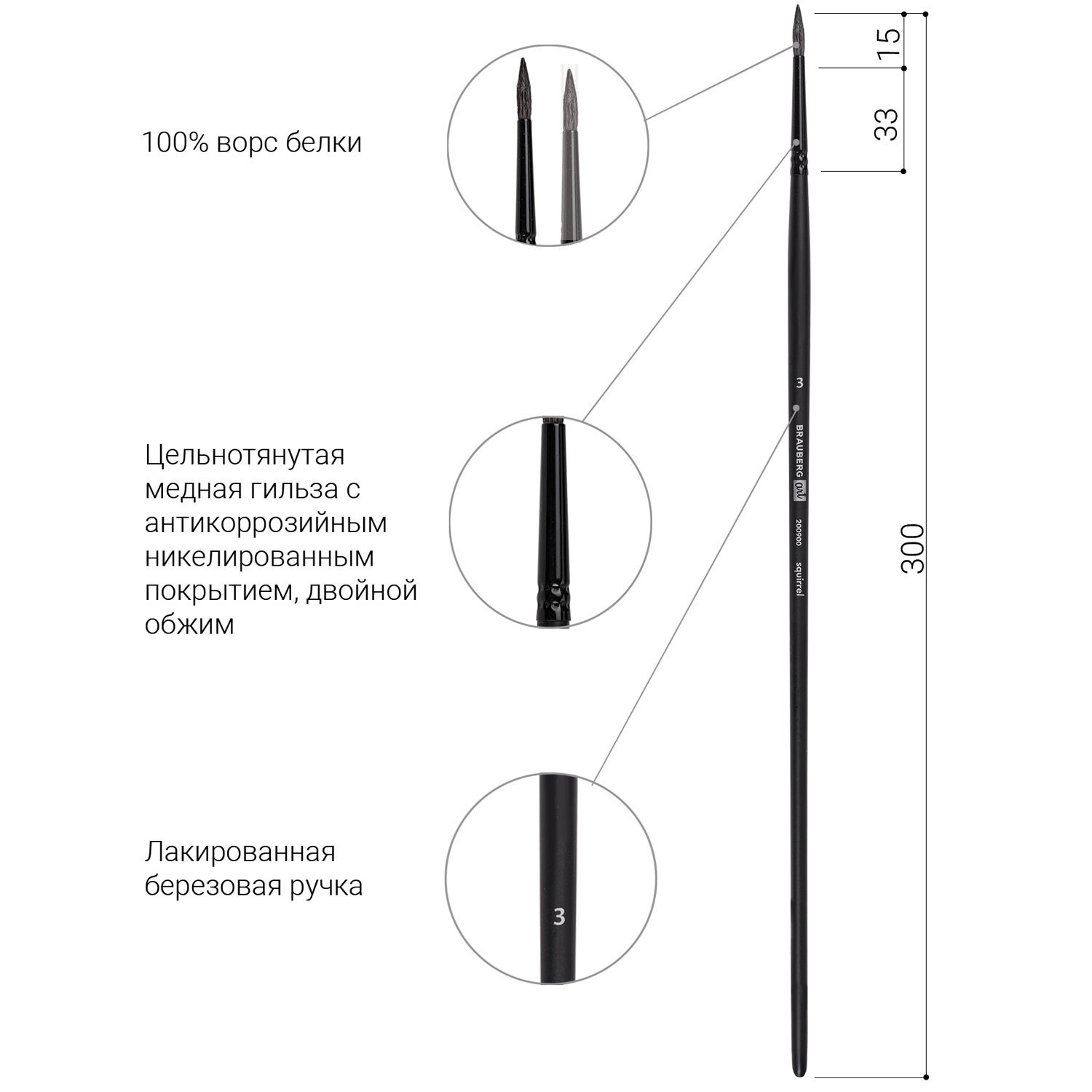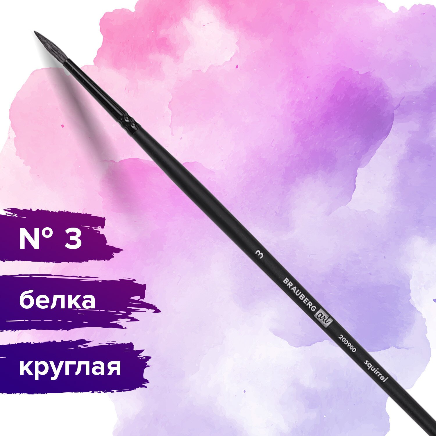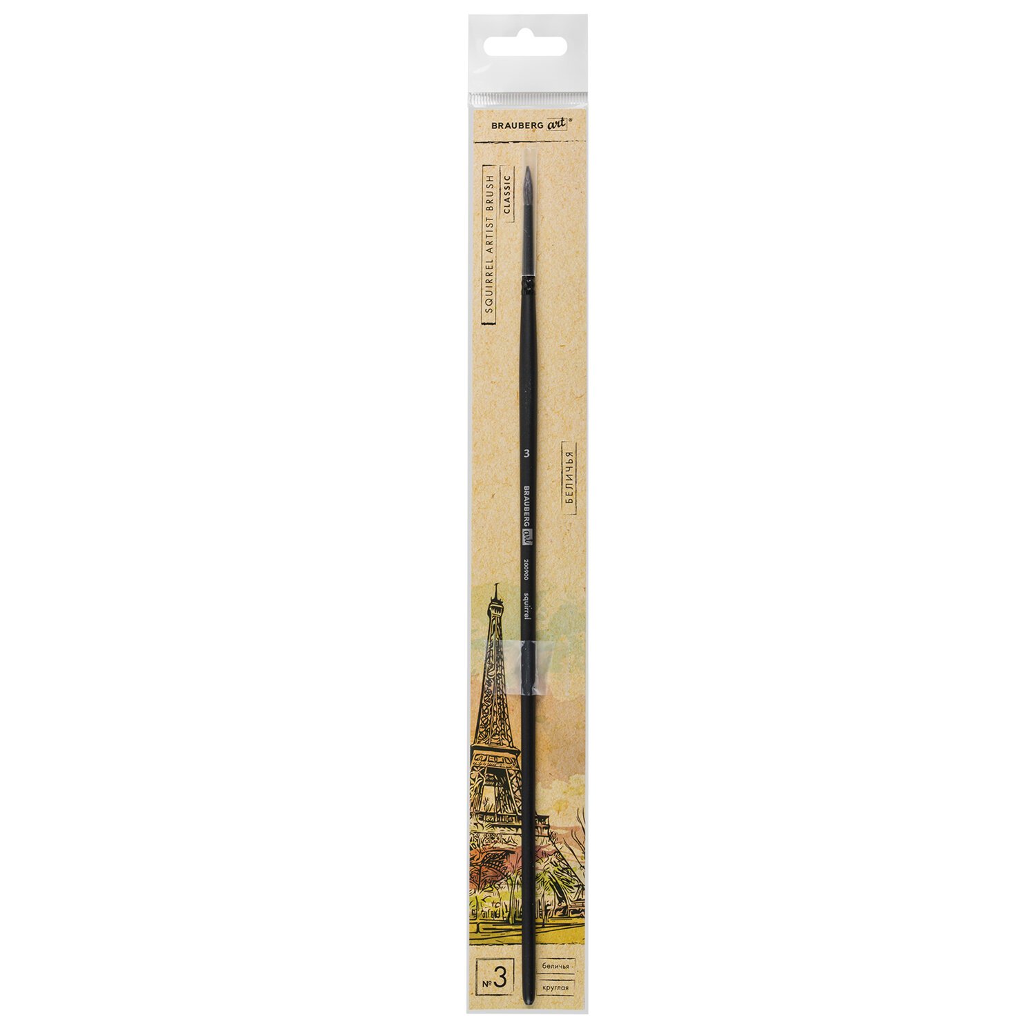 Кисть художественная проф. BRAUBERG ART CLASSIC, белка, круглая, № 3, длинная ручка, 200900
