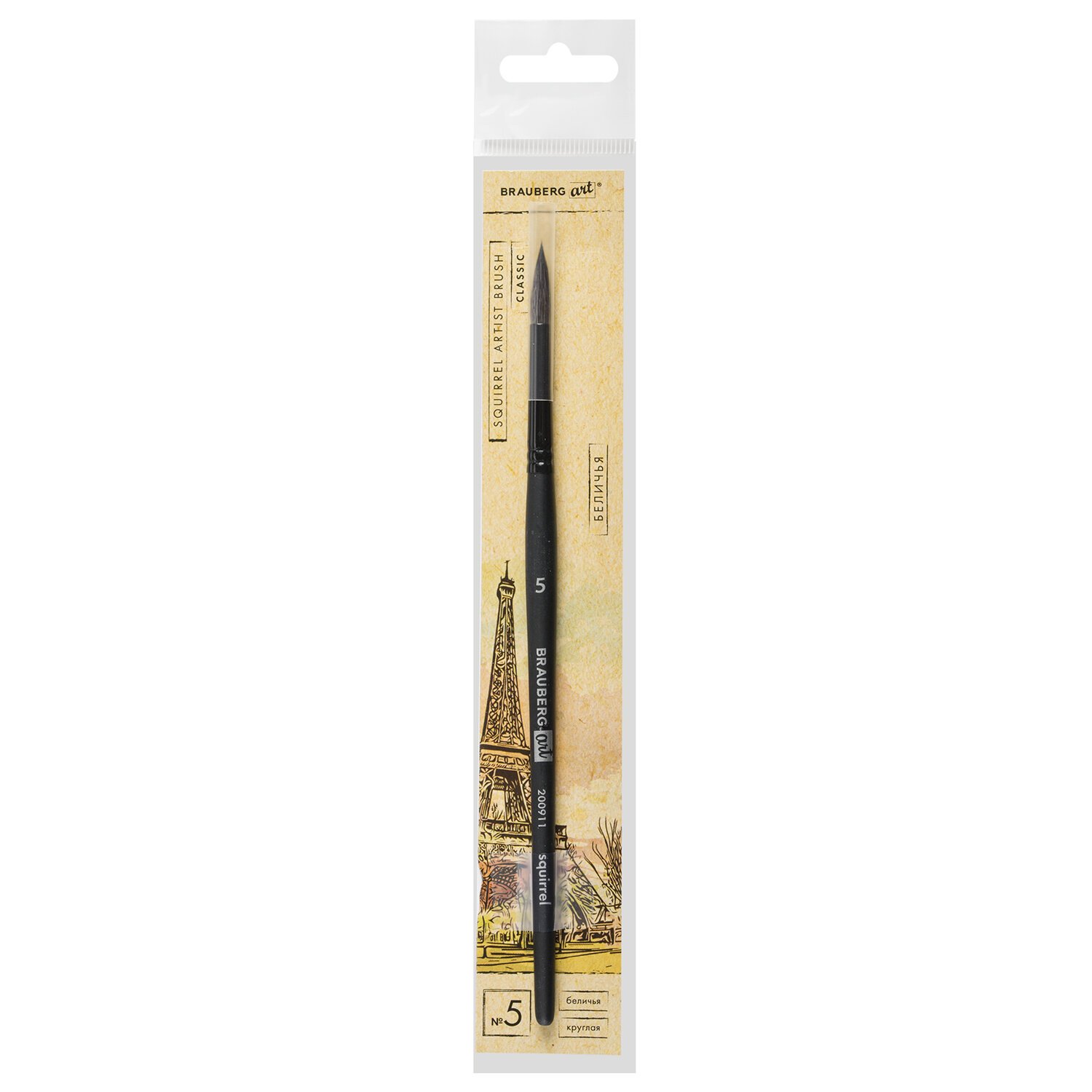 Кисть художественная проф. BRAUBERG ART CLASSIC, белка, круглая, № 5, 200911